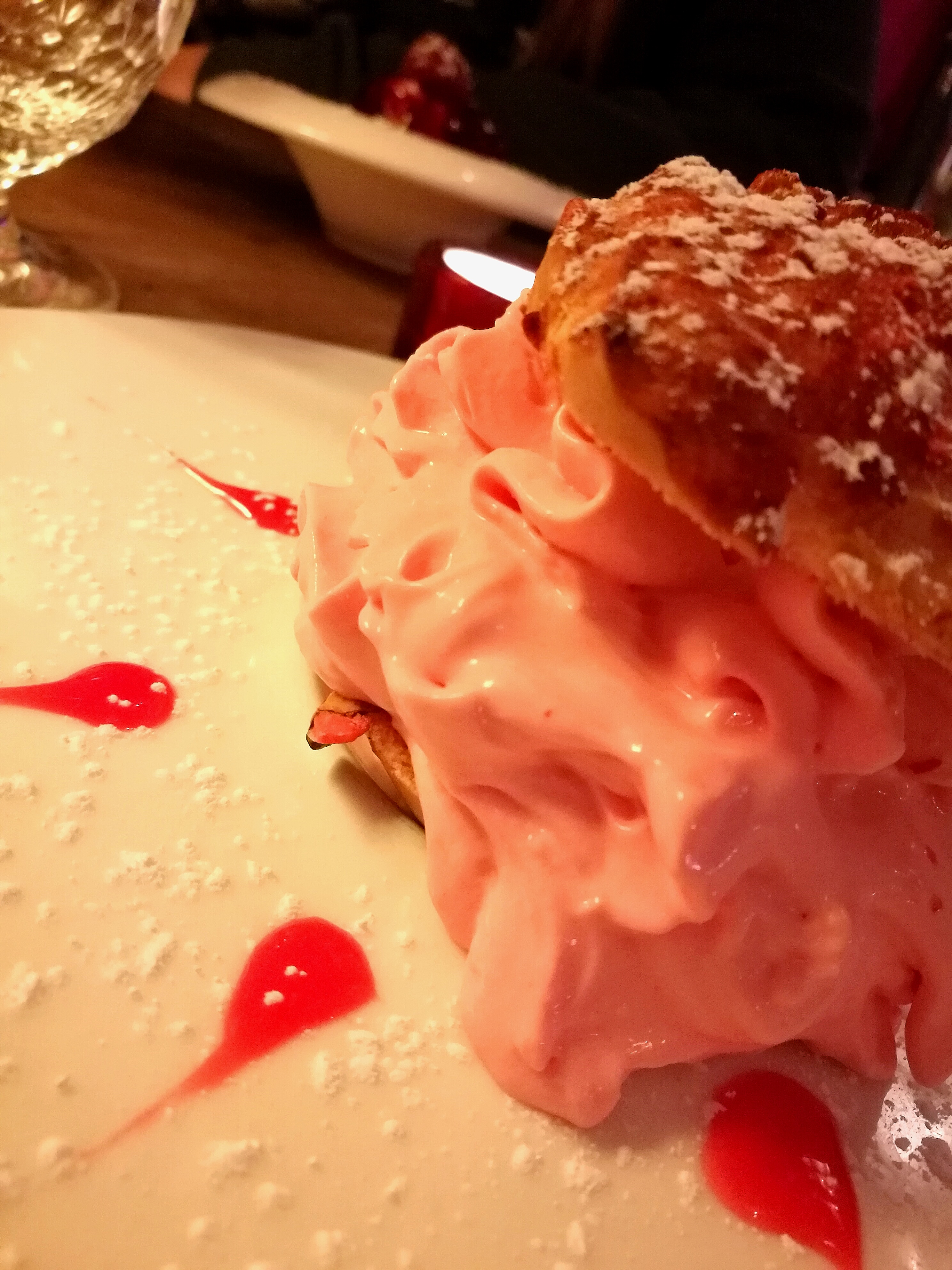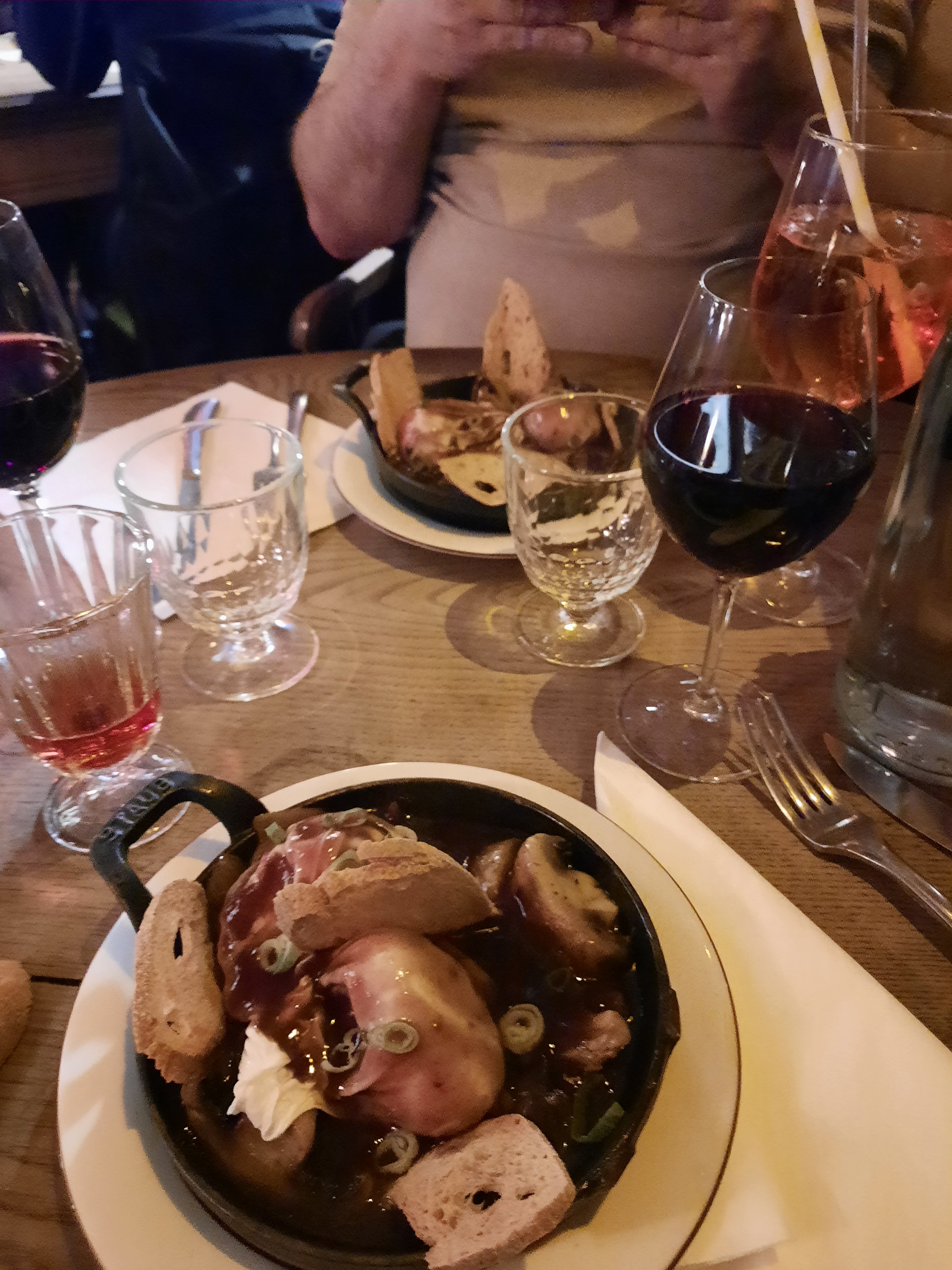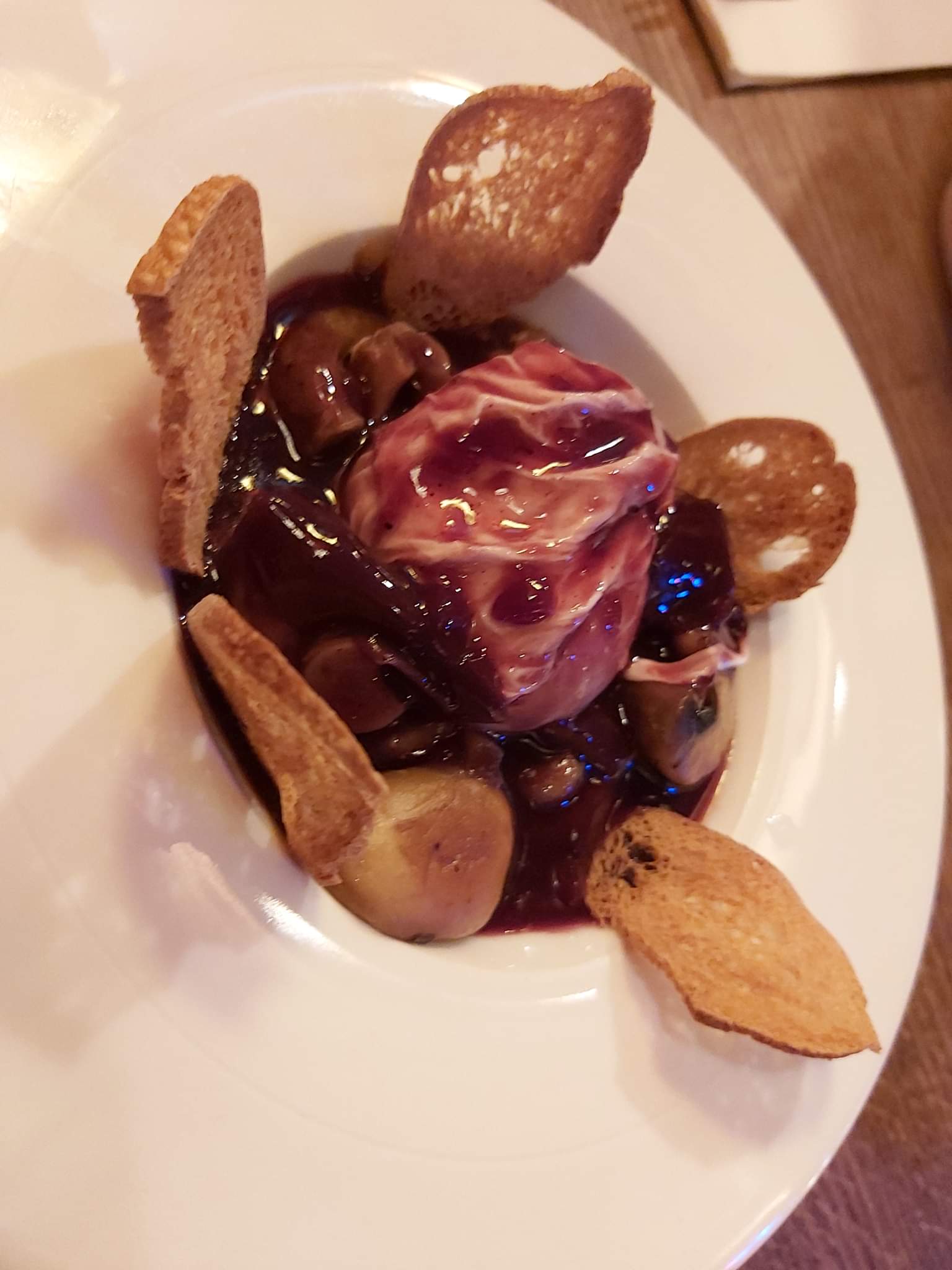 Super déco, et c’est tout, nous n’avons pas manger ensemble, tout au long de la soirée, erreur d’entrée, salade chèvre:, le chèvre non fondu, pas bonne et ravioles hyper sèches parce que la couche était trop fine, seuls les rognons étaient bons sur une table de 4, dessert bof. On avait pris des menus. Bon tant pis!