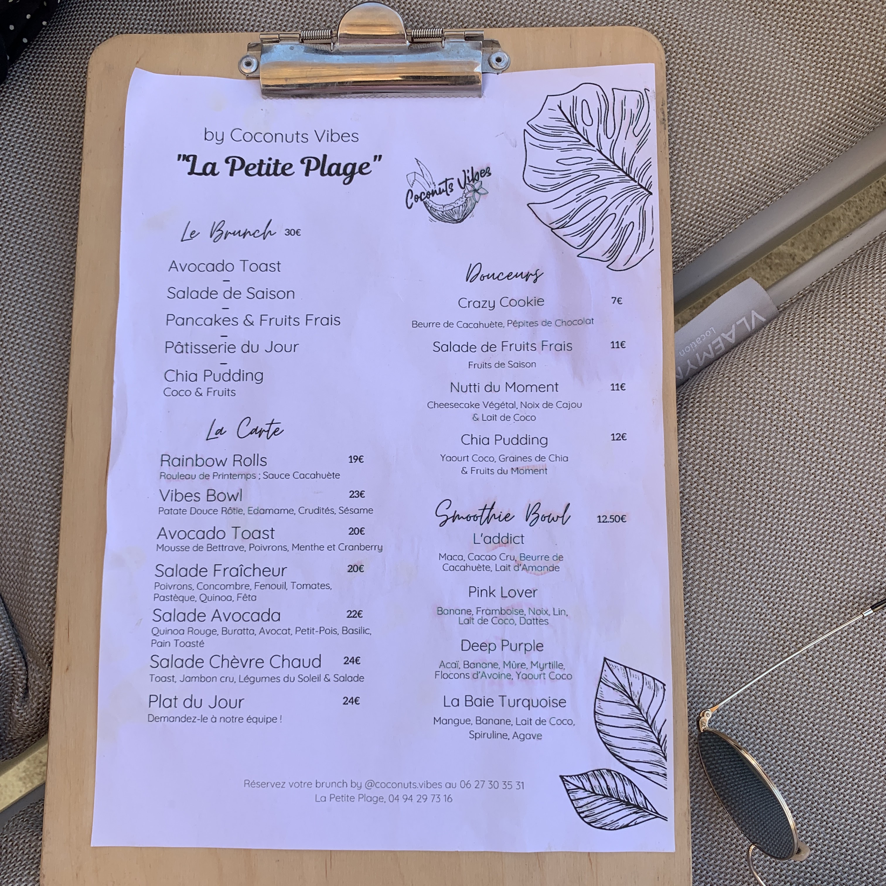 Brunch en collaboration avec coconut vibes cet été. Près bon produit avec une vue sur la mer 🌊 Une formule avec un plat , salé , sucré , boissons chaudes et froides. On s’est régalées. Je recommande ! Réservation à faire avant
