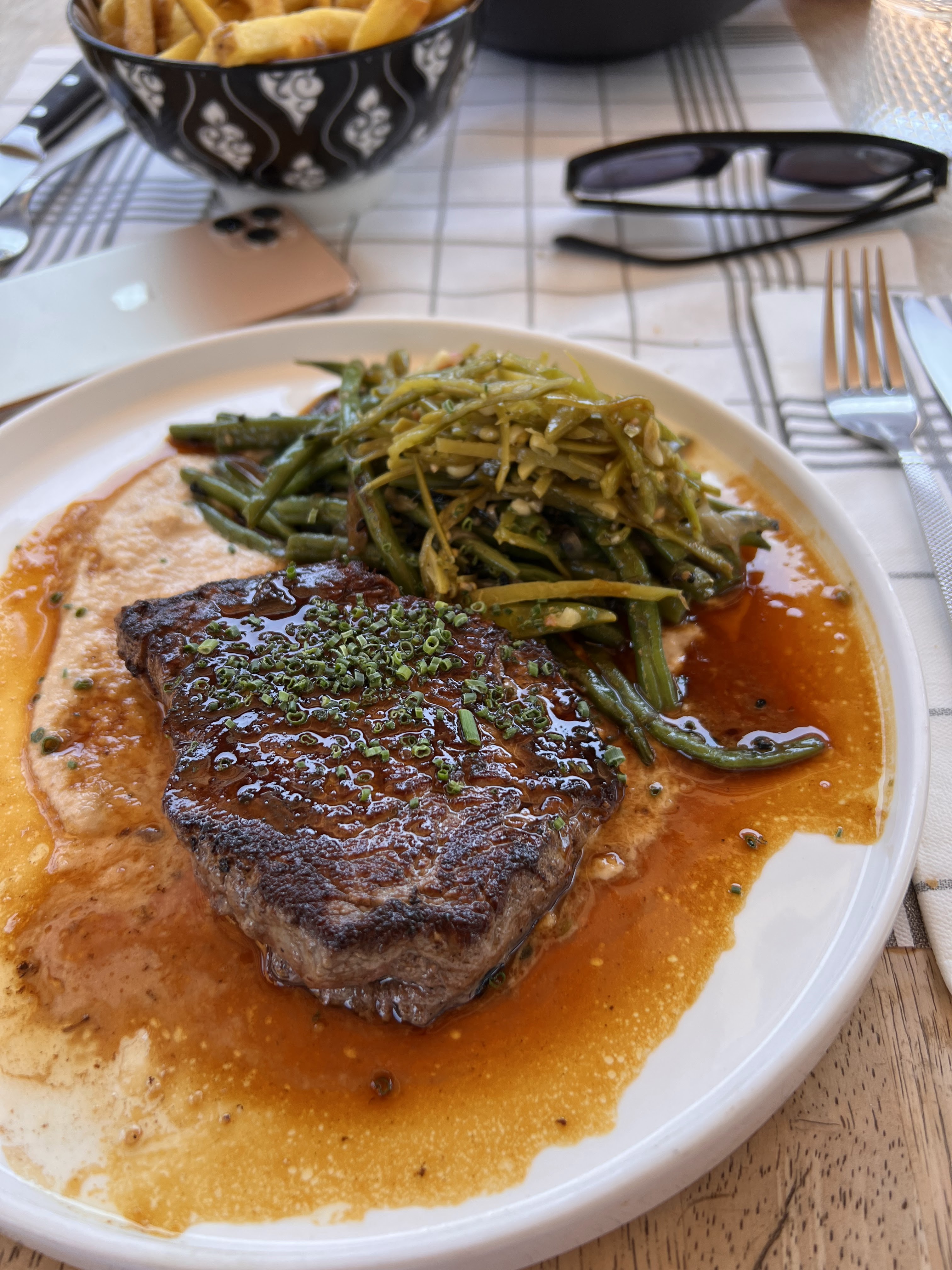 Nous avons passé un bon moment, super accueil, cadre magnifique et pièce de viande sublime ! Seul bémol, 14€ pour un plat enfant (même pas un menu) pour des frites (certes maison) et un tout petit morceau de poisson, c'est trop cher, limite indécent !