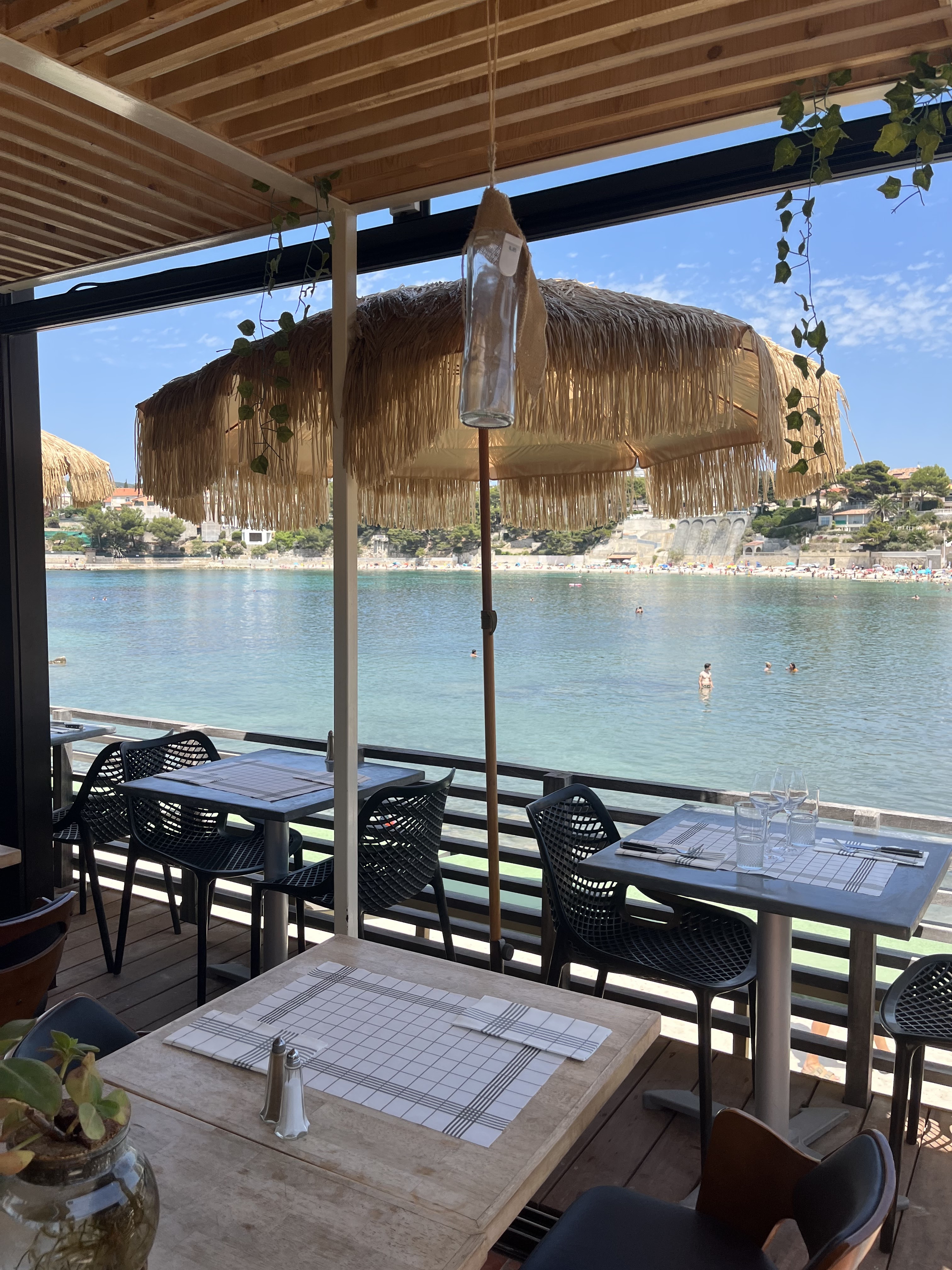 Délicieux, une vue exceptionnel sur la baie de Renecros à Bandol. Les plats étaient délicieux. Un superbe dernier arrêt avant notre retour de vacances.