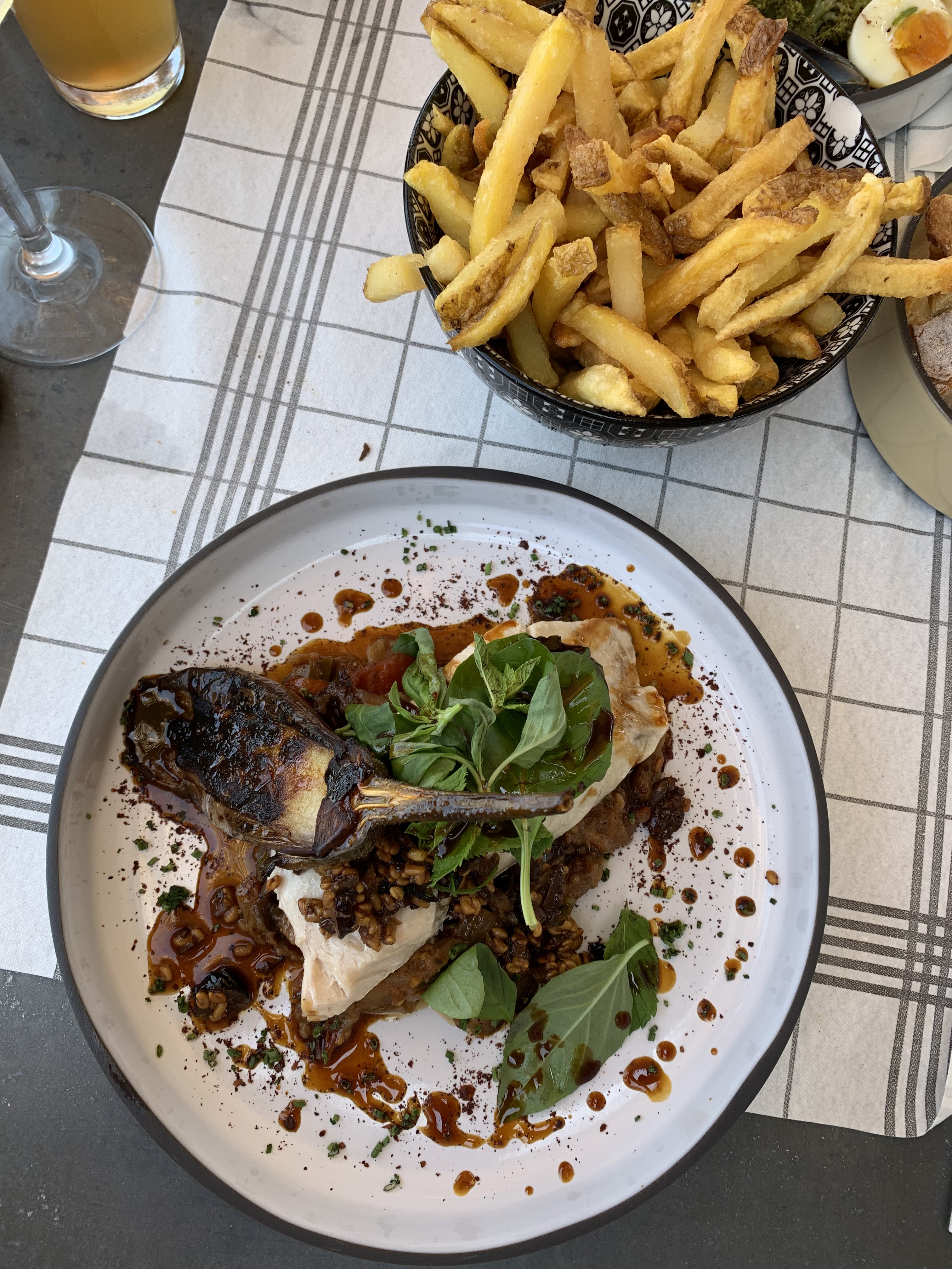Une bonne adresse qui offre une jolie vue sur la plage, service agréable, produits très bien présentés des couleurs dans l'assiette, découverte de saveur, carte originale. Points négatifs: ne pas avoir peur de la note salé. 2 petits bols de frites pour compléter le plat: 18 € Virgin mojito (sans alcool) 10 € Budget pour 1 plat 29 €. Ne correspond pas à tous les portes monnaies.