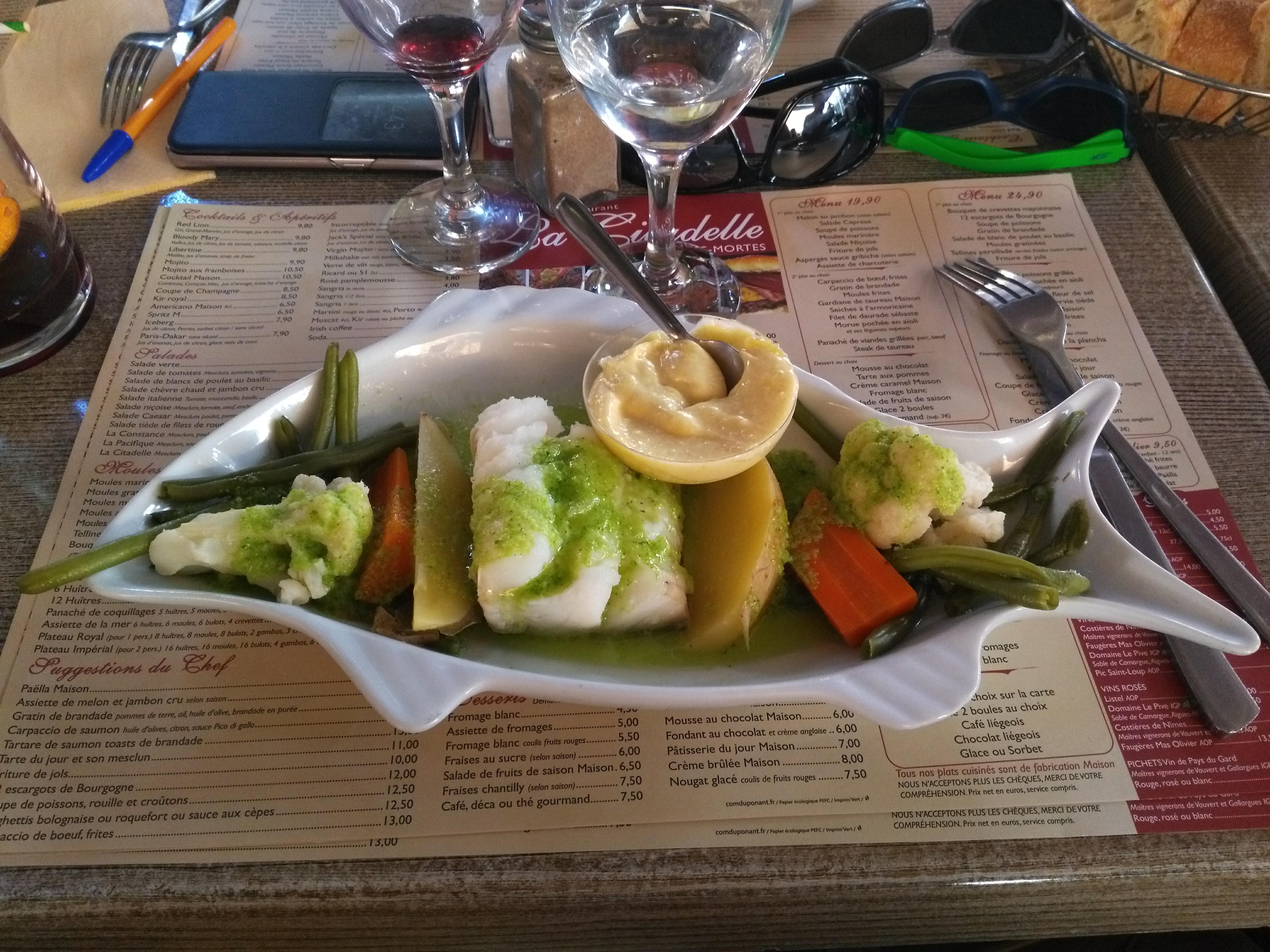 Après 6 restaurants en Ardèche faisant honneur à la cuisine régionale. Une grande déception à Aigue Morte ici où l’accueil a été froid et la cuisine à peine goûteuse (repas pris : un poisson frais avec légumes réchauffés et entrée soupe de poissons puis saucisse de taureau frites maison salade + dessert ) et dont les frites maison sont gâchées par une mayonnaise industrielle dégoûtante vendue en supplément. La salade pleine de gros sel (les salins sont à côté on sait !)immangeable. La soupe de poisson et le dessert en tiramisu non terminé tellement c’était médiocre. Le pain grillé aux herbes avec l’entrée et sa sauce curry en revanche était sympas . Mais impossible de servir la même avec les frites j’aurais dû garder le ramequins pour la suite . Bref l’endroit permet un brassage de touriste et de faire une clientèle sans se soucier de la qualité et l’accueil …