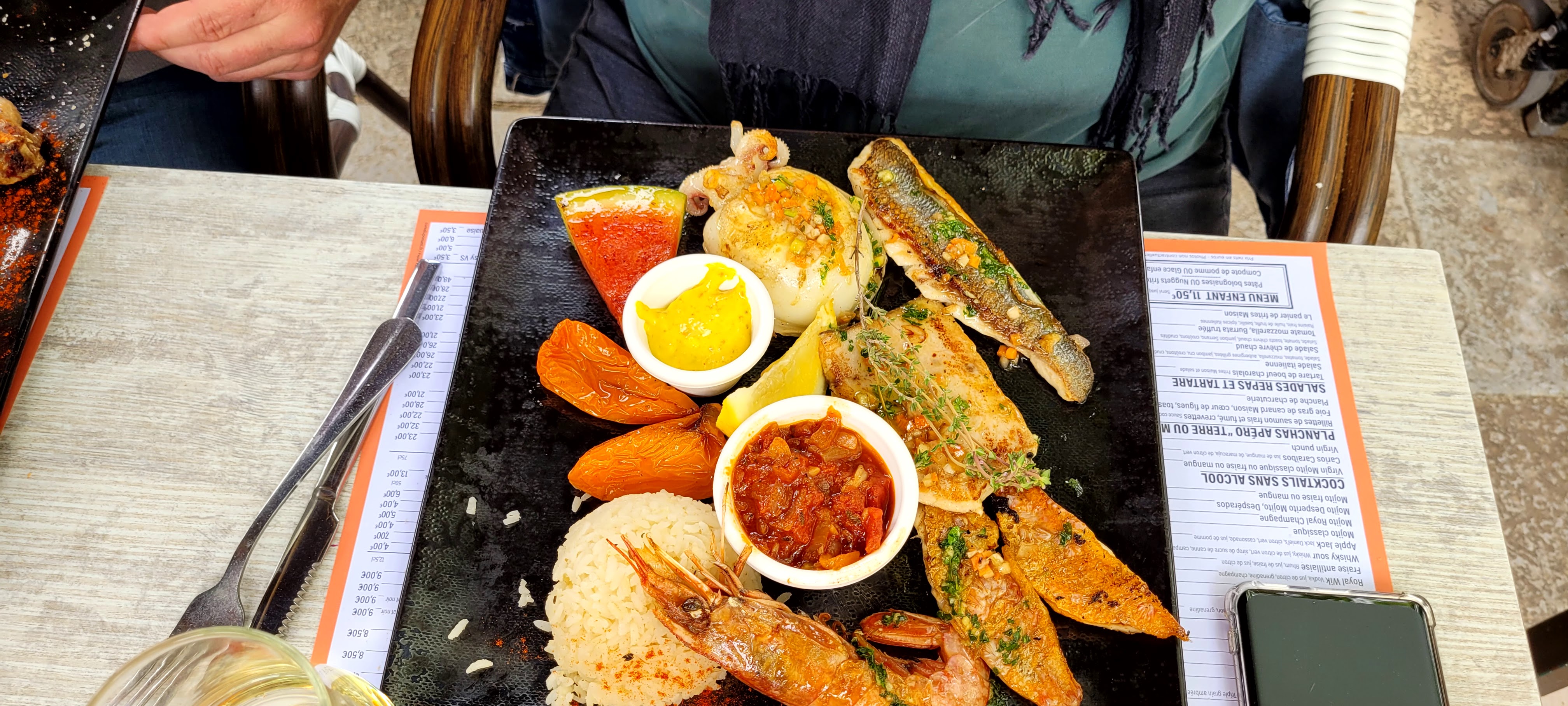 Nous avons goûté la terrine maison saumon et Saint-Jacques, la soupe de poissons maison (pas très épaisse), la rouille de sèche à la sétoise et les poulpes à la sétoise et linguiste : dé-li-cieux. Les portions étaient généreuses et le prix attractif ! Entrée + plat à 21,90€. Le service impeccable, tout le monde est souriant. À essayer !