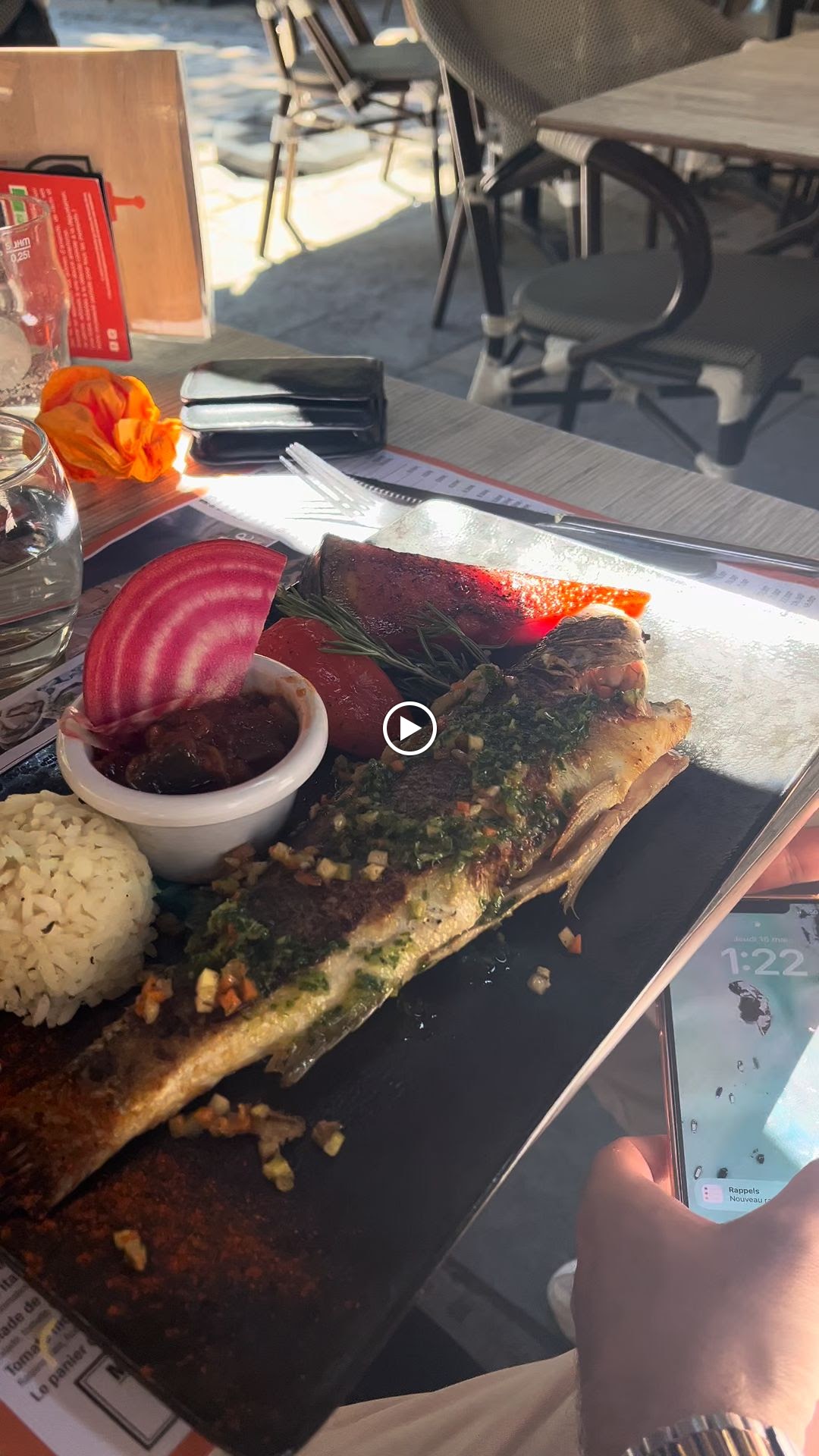 Personnel pas hyper souriant. Terrasse agréable avec choix d’ombre ou de soleil. Les plats bons : bar grillé et burger malheureusement avec un steak car il n’y avait pas de poulet et personne nous l’a notifié quand nous sommes arrivés. Pas possible de changer d’accompagnement, grosse déception, surtout quand on est pas en plein rush et qu’il est même pas midi.. Desserts : un brownie, les mêmes qu’on achètent au supermarché, au moins il a bien décongelé. Et sunday ok. Ne prenne pas les tickets restos. Prix corrects. En résumé assez mitigée, plats bons mais pas mal de choses à revoir.