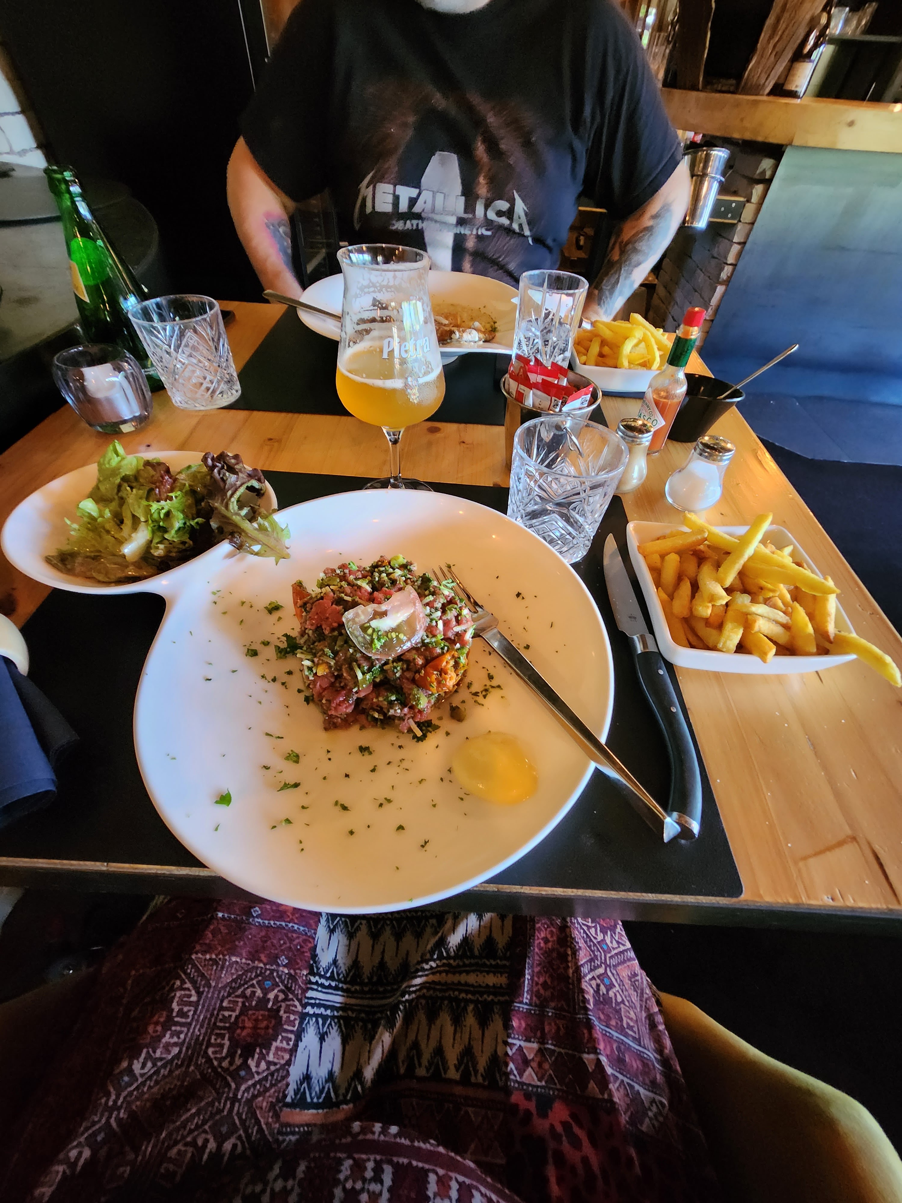 Personnel au top. Belle terrasse et on etait à l extrémité donc au calme. Malheureusement le steack tartare était spongieux donc pas super agréable. Le carpaccio de fruit etait en fait 1 salade de fruit. Les autres convives ont bien apprécié. Bonne experience malgré tout.