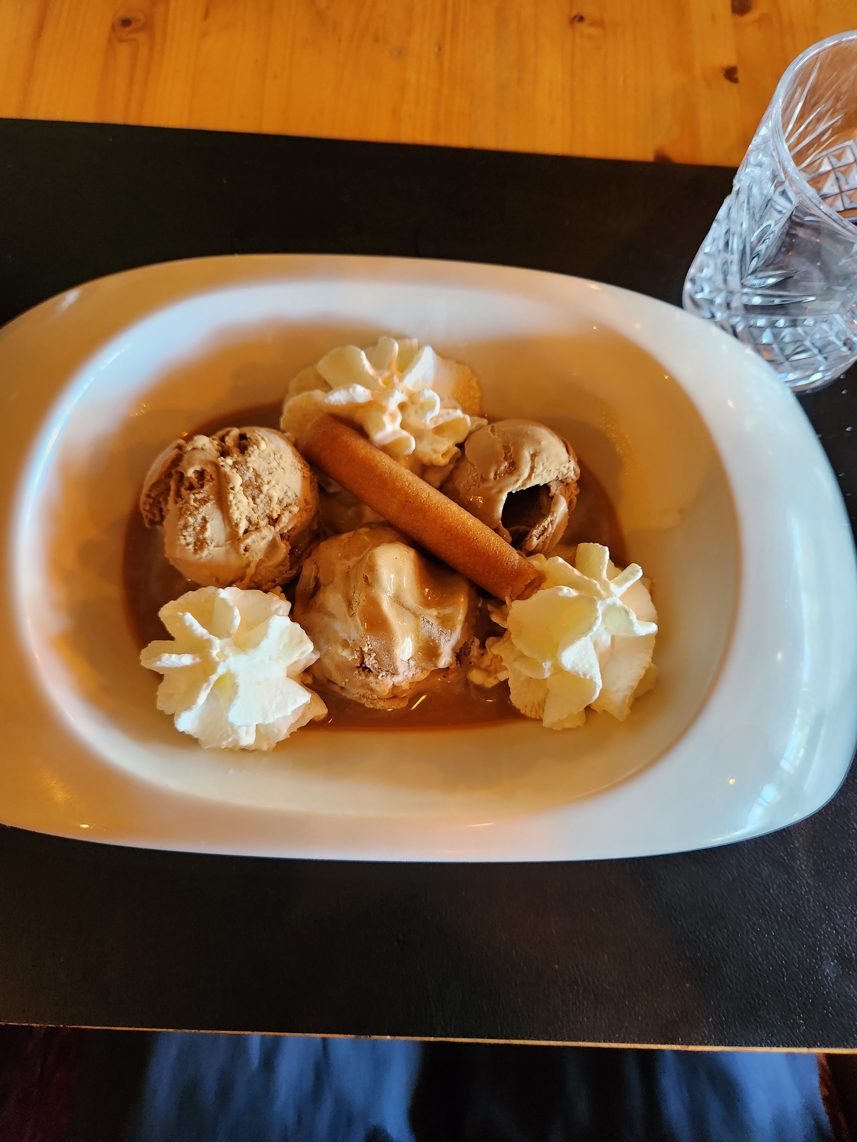 Service très décevant. La serveuse aux cheveux un peu rouge, s’occupant de notre service était loin d’être professionnel et pas du tout aimable. Commandant 2 boule de glace chocolat comprend un chocolat viennois, pas de soucis je lui dis que c’est bien 2 boule de glace mais ramène quand même un chocolat viennois et ne s’excuse même pas. On avait l’impression de la déranger pour être poli. Et bien évidemment le chocolat viennois était toujours en plus sur la note, heureusement qu’on vérifie le ticket. À part ça l’ambiance est top et le service rapide malgré tout.