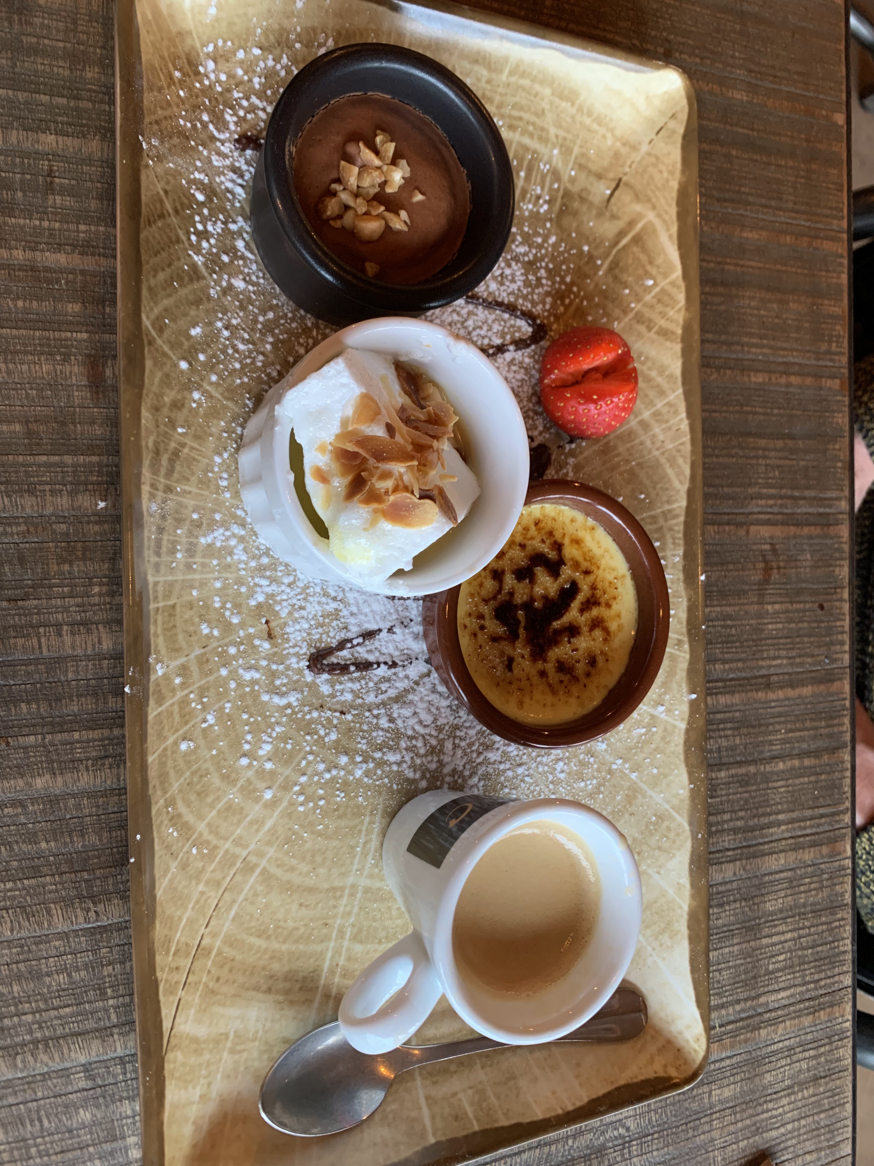 Cadre agréable, serveurs très sympathiques , les petits desserts du côté brasserie excellents moi j'avais une crêpes créole très appétissante , s'il vous plaît, mettez un peu plus de rondelles de banane 🍌 Merci