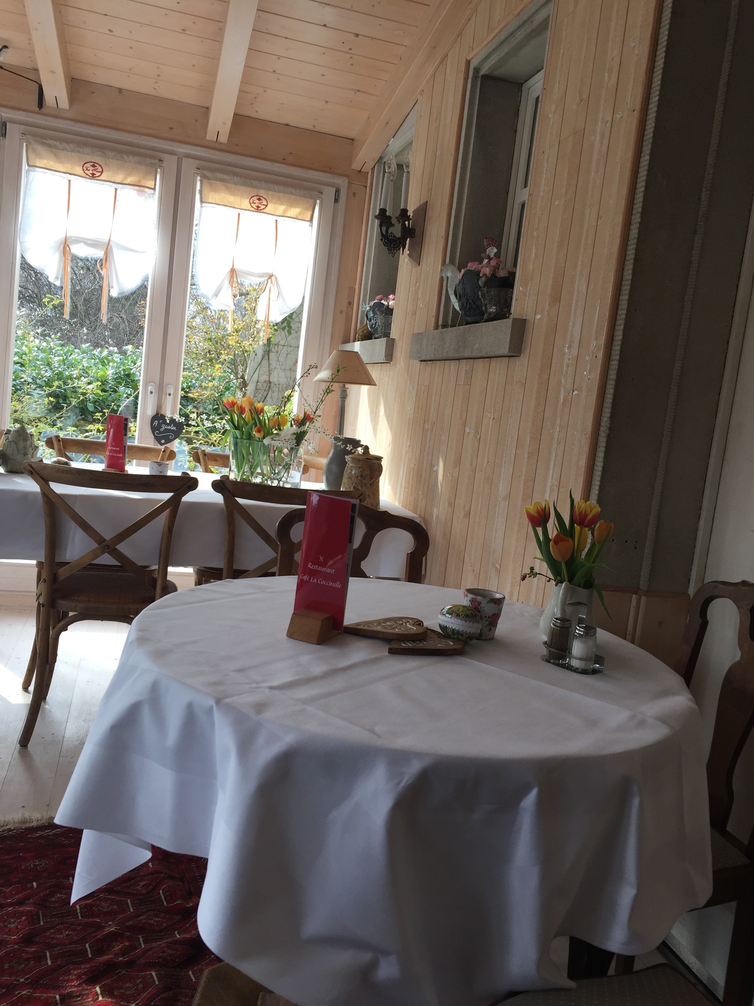 L'endroit est bucolique. Coccinelles partout. C'est la halte pour un déjeuner ou un dessert lors d'une balade à vélo le long du canal de Colmar. Le patron est sympa.