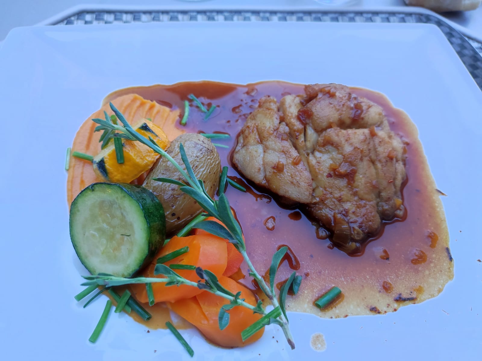 Meme si je fus invité je me suis permis de donner mon avis. De gastronomique que le nom de la chose bien peu. Désolé chef mais les mêmes accompagnements pour tous les plats et la même sauce orange ce n est pas à la hauteur des ingrédients mis en œuvre qui étaient bons. Aussi le terme gastronomique est à mon humble avis usurpé. Déçu car sur-vendu