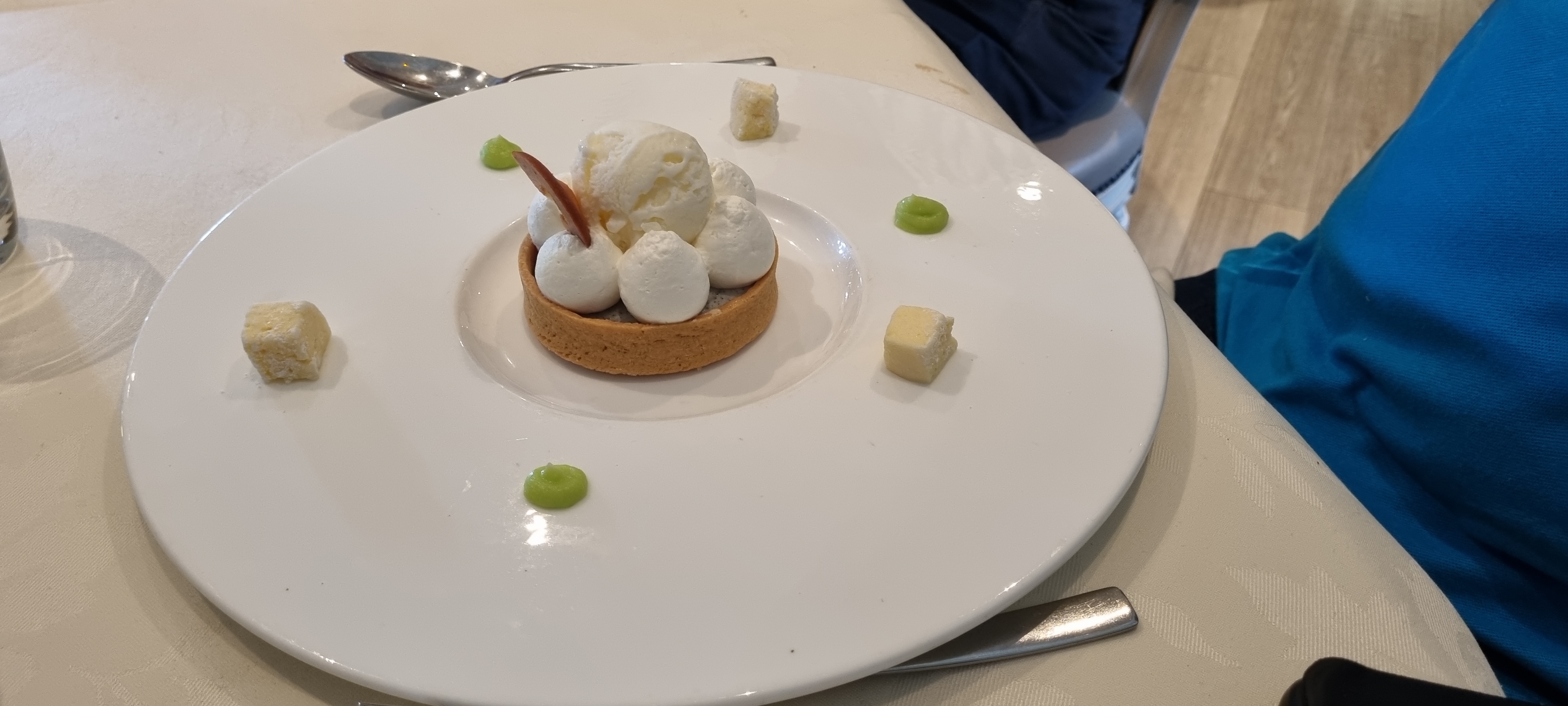 J'étais ici pour déjeuner le 22 septembre 2022. Une journée mémorable pour moi, ce fut non seulement le meilleur repas de mes six semaines de vacances, mais aussi le meilleur repas des trois dernières années. Je veux juste donner un exemple des délices qui étaient là. L'entrée était un carpaccio de poisson, je pense que ça aurait été de la daurade. J'ai aussi eu un Sancerre sensationnel d'Henri Bourgeois. Une combinaison qui sera difficile à battre. Le couronnement final est un rêve de mousse vanillée, de pâte feuilletée et de crème. Une nouvelle visite est définitivement prévue pour mes prochaines vacances sur la Côte d'Azur ! Le seul inconvénient est qu'il y a encore place à l'amélioration du personnel.