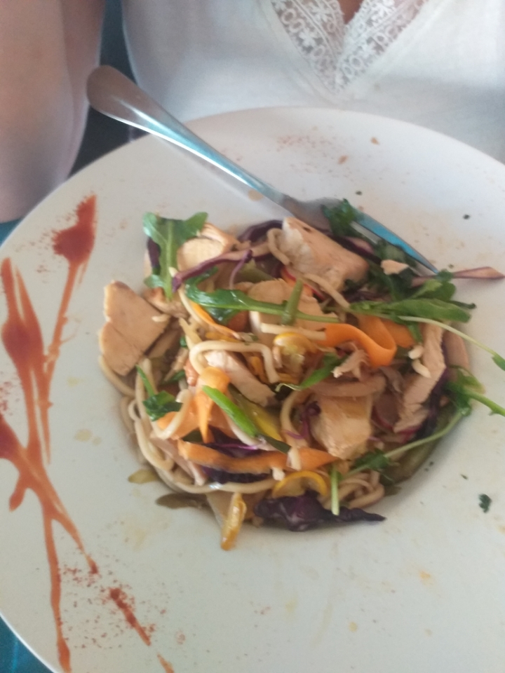 Beaucoup de temps pour avoir notre commande.Ils l'avaient égaré. Wok végétarien et wok poulet...pas terrible du tout. Même pas un geste enfinde repas pour les 40 mn d'attente.