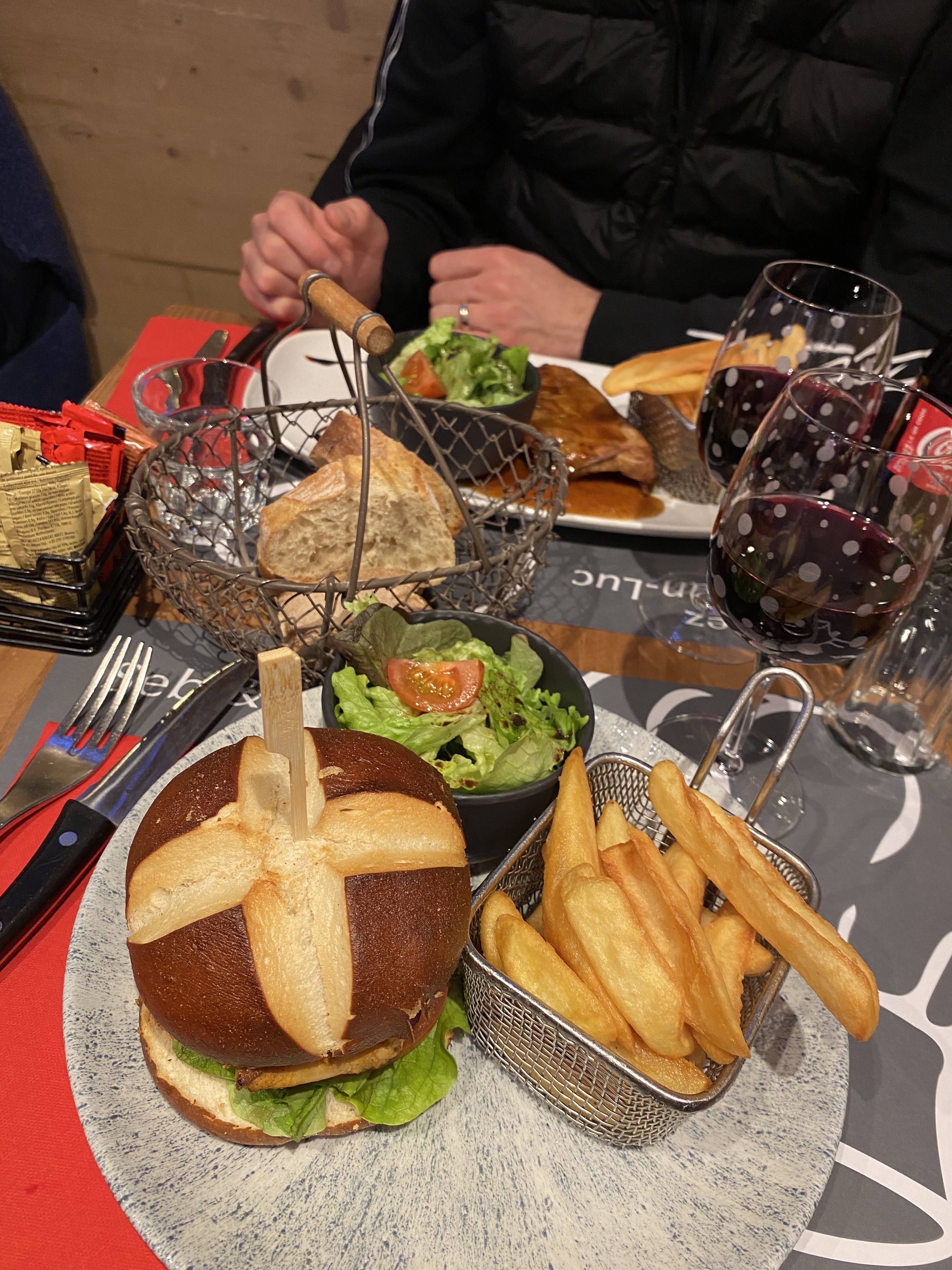 Restaurant de spécialités à la Clusaz. Digne d'un restaurant pour touristes. Accueil des plus basique avec un service au minimum syndical. Bon, c'est la haute saison hivernale et le restaurant fera le plein. Déco très limité et dressage sur table du même acabit. Les burgers que nous avons pris étaient bon , maison, la tranche de foie gras généreuse, par contre la fondue pour quatre très très limitée, pas suffisante. Dommage. Les desserts, la dame blanche digne d'un menu enfant, le fondant au chocolat était bon. Évitez la pizza du menu enfant. Un gadget. Je pense que hors saison se restaurant doit mieux tirer son épingle du jeu et soigner sa prestation. Dommage.
