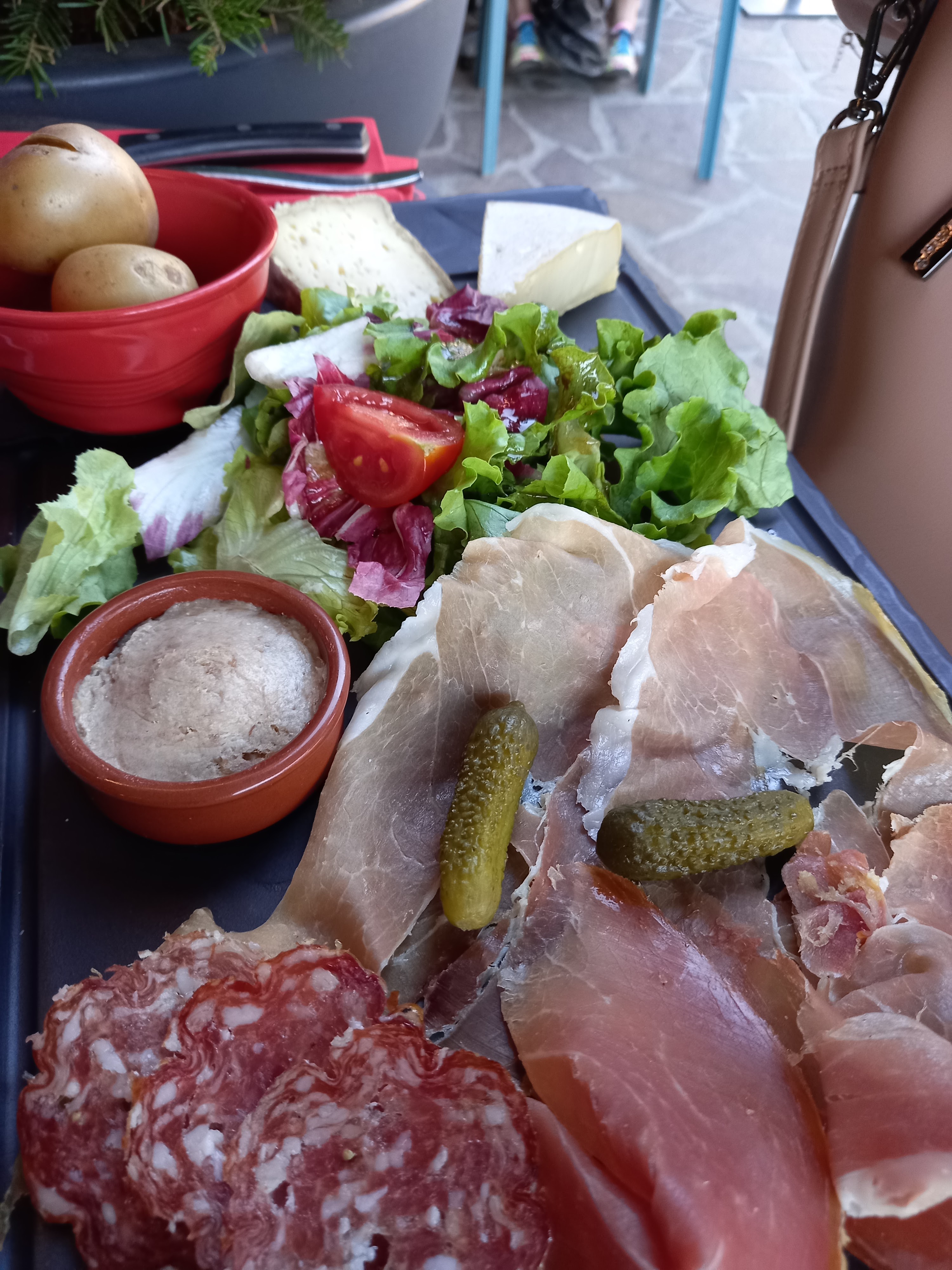 Très très mitigés. Guide du petit futé depuis des années et bien une déception pour nous. Le plat que nous avions choisi était bon ( tartiflette). Mais les entrées.... Cela manque réellement et sérieusement d'accompagnements. -assiette de foie gras ( 2 morceaux, 3 tranches de pain et une mini potée de confit de figues) -tranches de saumon x3 pain et basta. Présentation bof, il aurait fallu au moins un peu de salade, une sauce d'agrément, du beurre, citron des épices et divers confits pour le foie gras. Ce qu'on trouve ailleurs en fait. On n'a pas pris de dessert, peur d'être déçus aussi. Service froid, direct. On demande si ça va mais quand on répond le regard est ailleurs et ça s'en va... Donc bon ok peut-être le rush du premier service mais un minimum tout de même. Je pense pas qu'on soit des clients chiants mais vu la réputation on s'attendait à autre chose.. La table à côté de nous s'est plainte également mais n'a rien osé dire.. Dommage. Cela ne serait que bénéfique.. Les habitués, on le voit et entend ont un bien meilleur accueil et service. Ma foi c'est comme ça....juste , vraiment dommage...