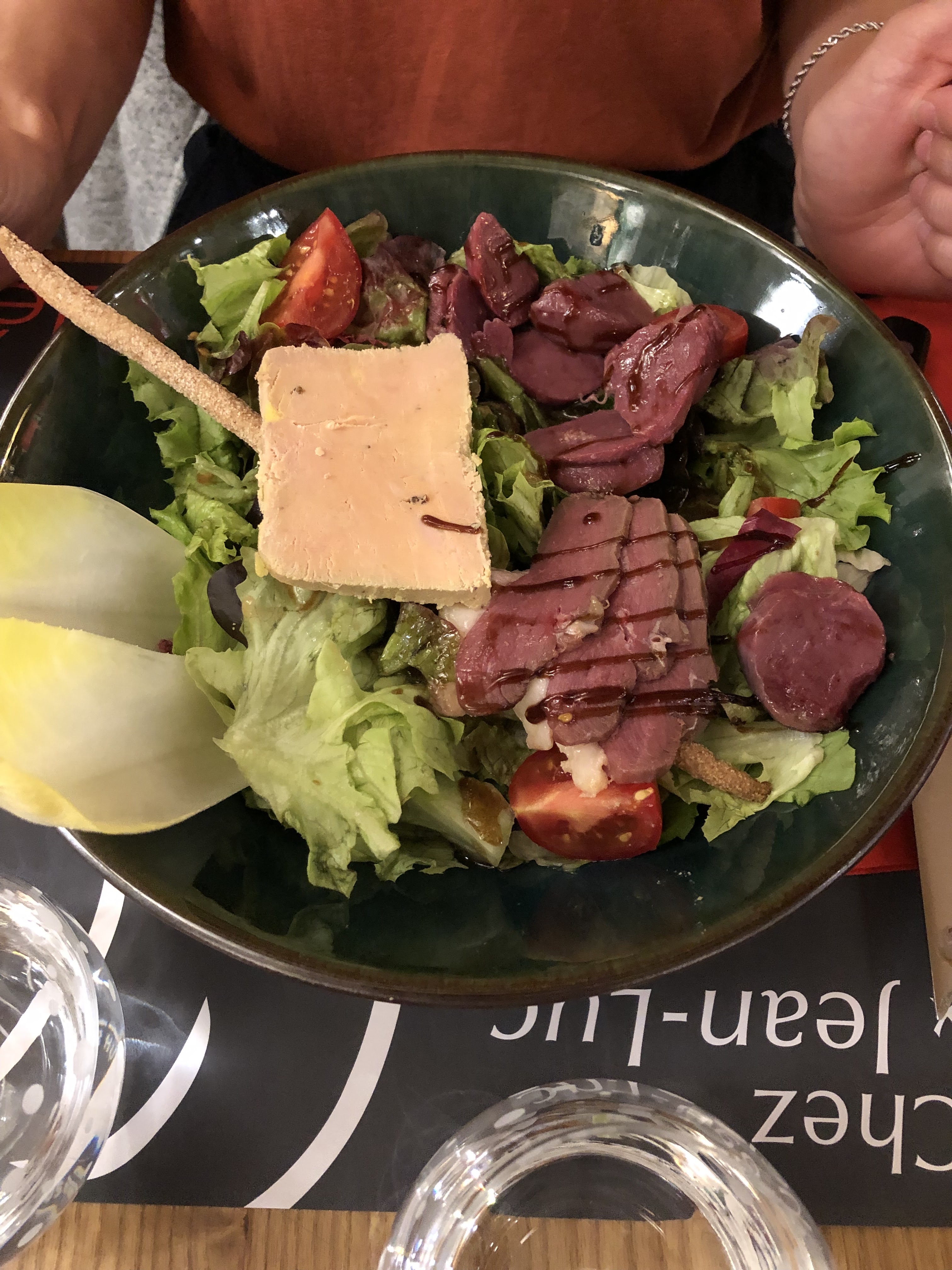 repas pris vendredi soir au service 21h00. super qualité. salade avec magret gesier et foie gras : jamais mangé magret de cette qualité. gésiers super aussi et foie gras incroyable. c'est fait maison cela change tout. à refaire. je recommande.