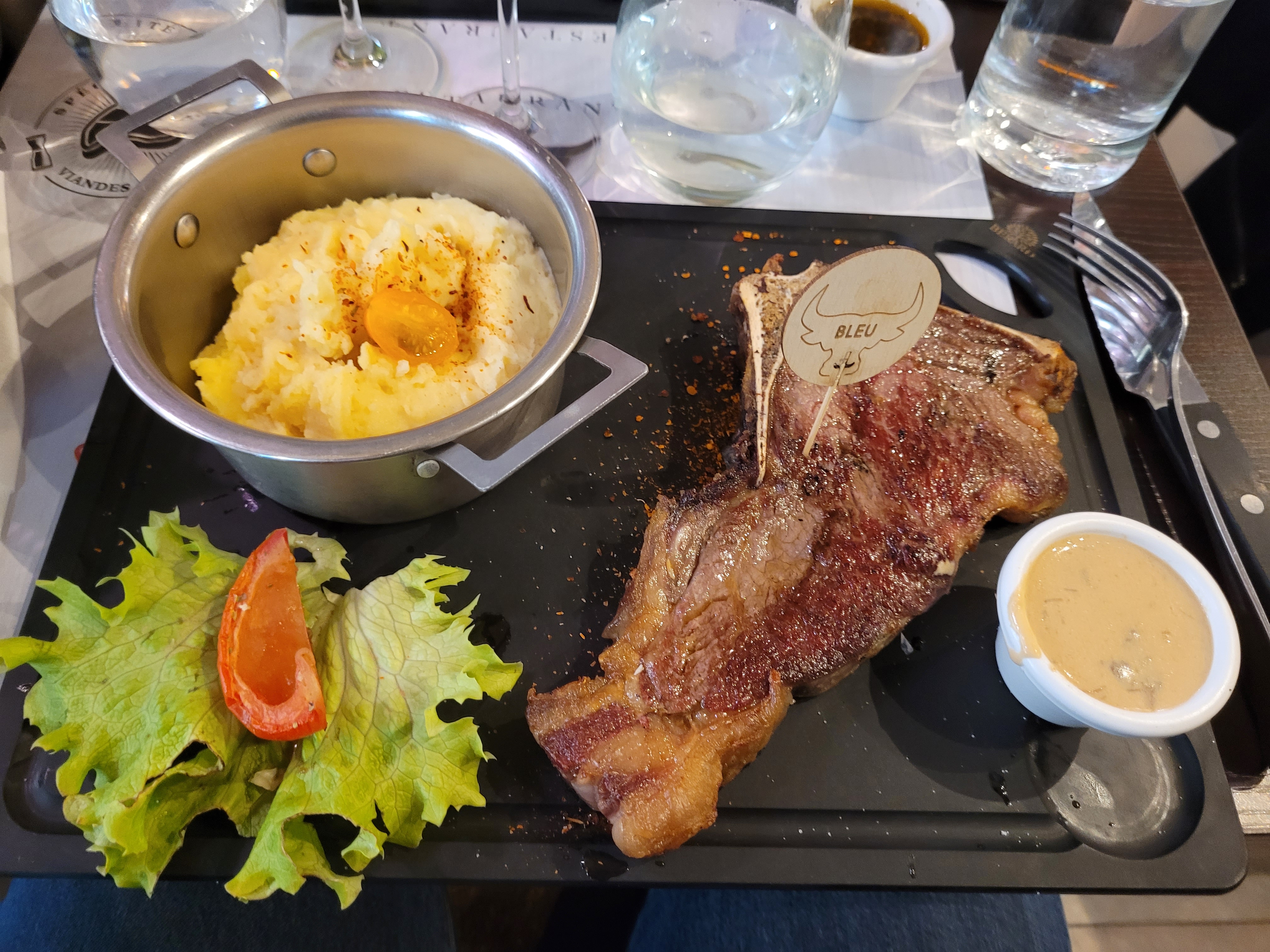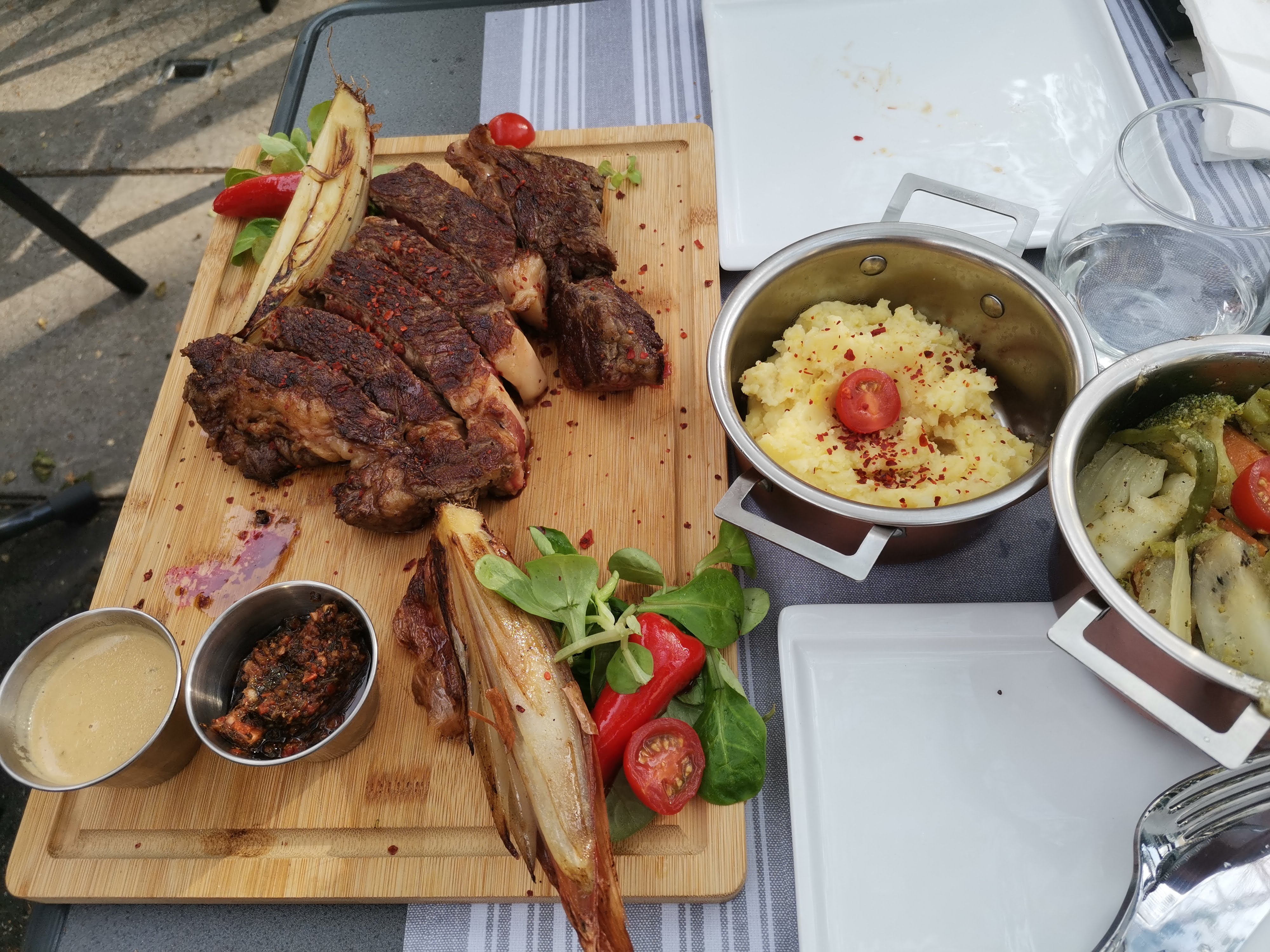 De très bonnes viandes, nous avons pris un menu découverte avec le tomahawk de 1kg pour 2 personnes, c'était excellent et la carte des vins est plutôt bien fournie. Nous avons passé un bon moment cependant nous manquions de place, les tables sont un peu trop petites à mon sens et peu espacées les unes des autres. Sinon le service était top et rapide. Le personnel sympathique. Merci pour l'accueil.
