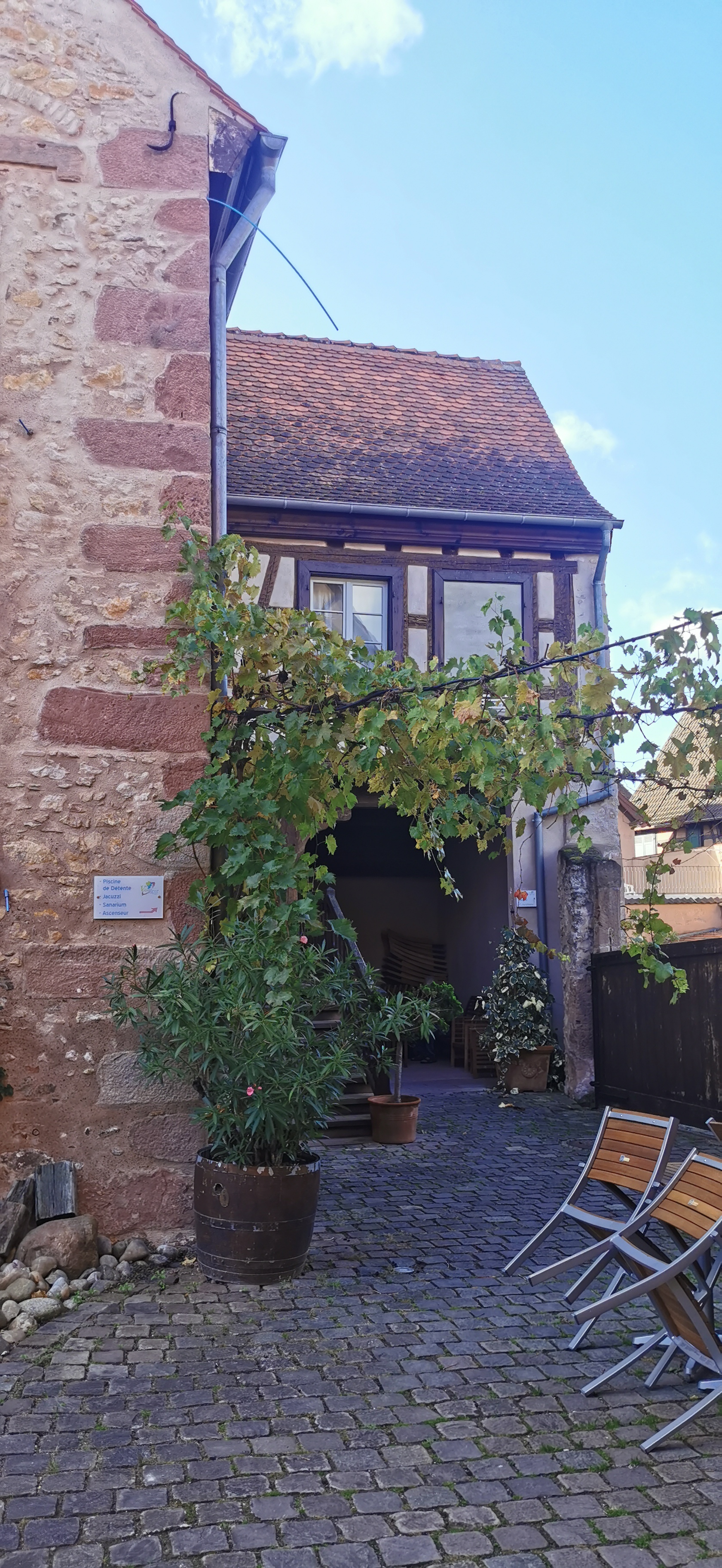 Très bien situé au milieu de Bergheim, on peut notamment se procurer de quoi déjeuner. La cuisine est très bonne.
