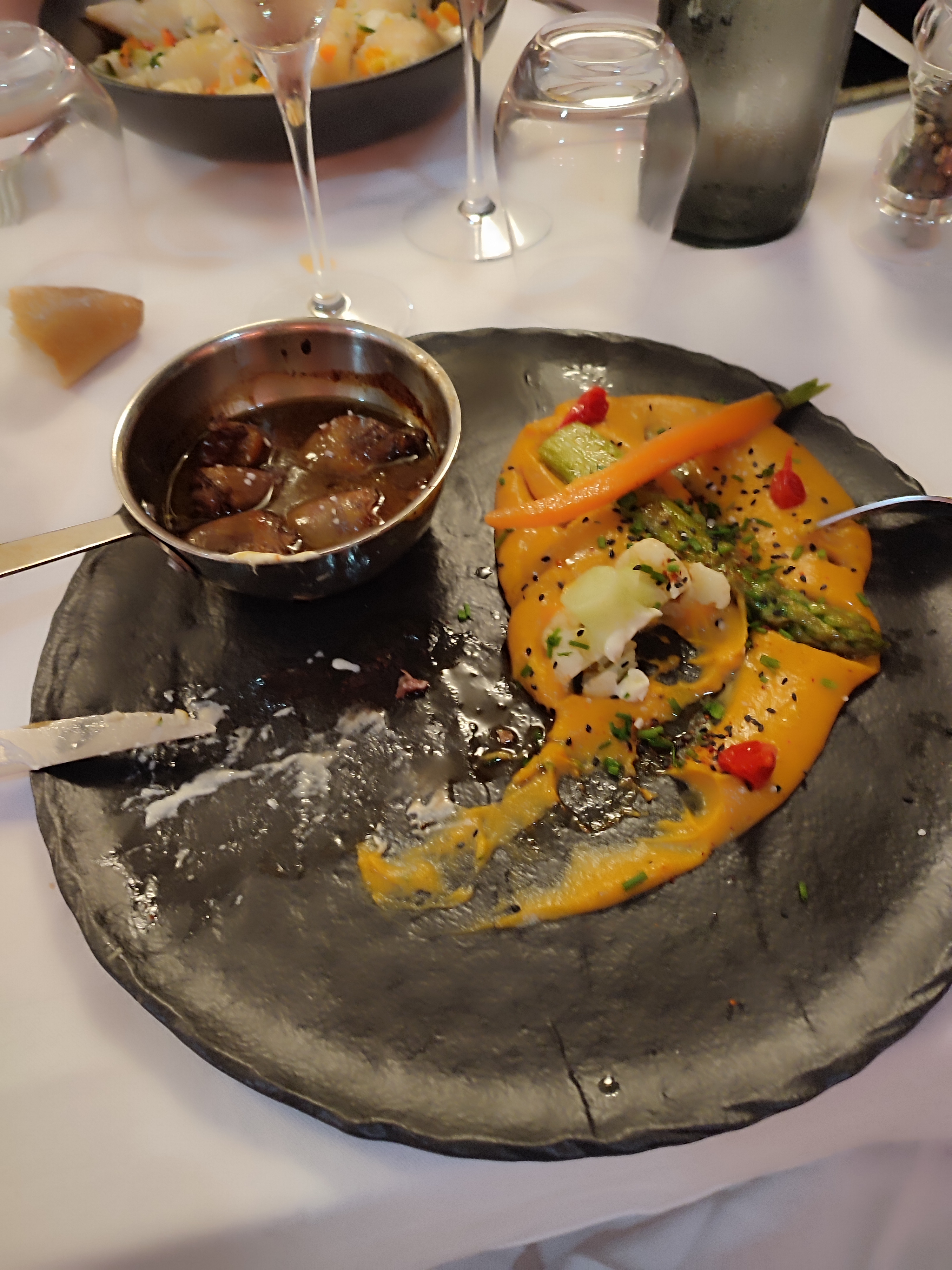 A mon goût pas terrible. Pour l’entrée, la sauce avec les cuisses de grenouilles était fade. Le plat sans grand intérêt, une escalope de veau milanaise avec des pâtes presque froide, ça faisait repas de cantine. Le fondant au chocolat en dessert était bon. Mais dans l’ensemble je suis assez déçue