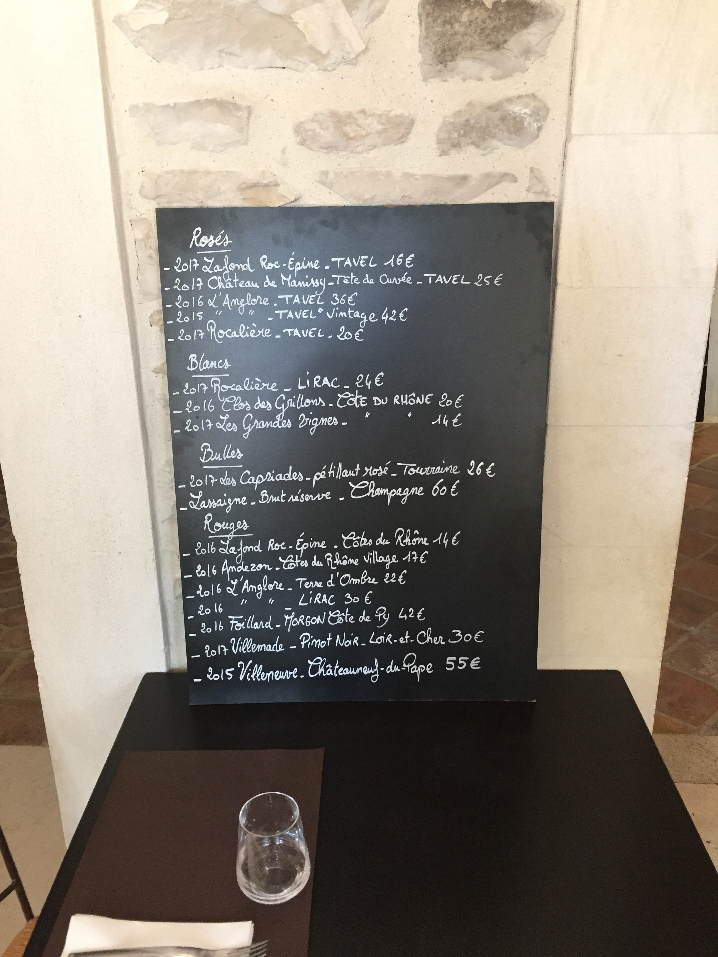 Nous sommes entrés ici parce que c'était un restaurant selon Google et que nous avions faim après avoir fait du vélo jusqu'à Tavel depuis Avignon. Ce repas a duré environ 3 heures ? C'était génial, c'est comme un vieux château ou un manoir ou quelque chose comme ça et vous êtes assis dans le magnifique jardin et finalement ils vous apportent un menu sur un tableau. Un peu entre traditionnel et rebondissements sur les classiques. La nourriture était excellente, avec beaucoup de légumes frais et une assiette réfléchie et j'ai mangé un pancréas, très satisfaisant. La salle de bain était plus grande que l'appartement que nous avions loué. Tout simplement absolument magnifique, tu devrais aller ici