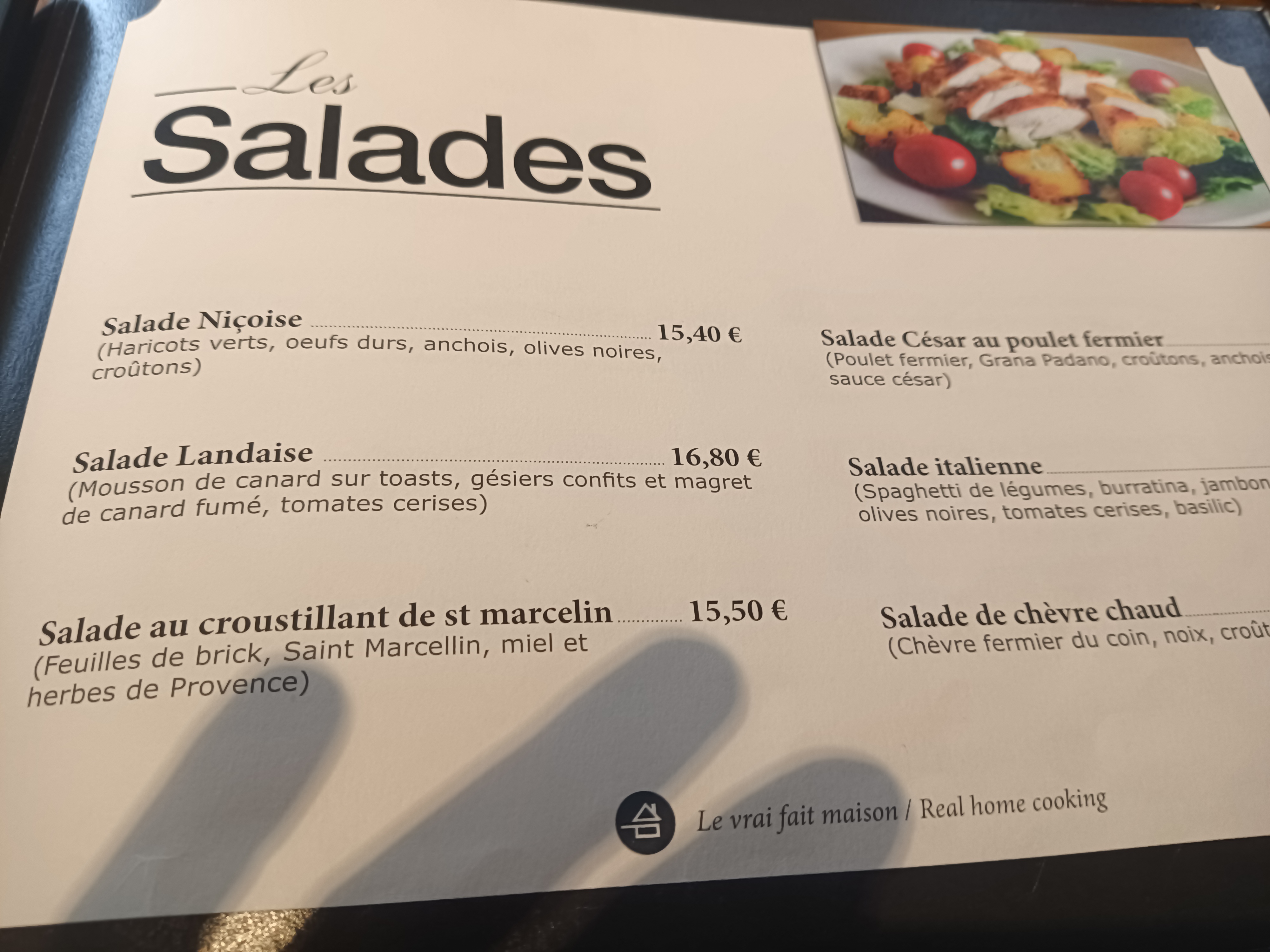 Question menu pas de surprise encore les mêmes propositions donc....non... Puis brochette de bœuf frites .Les féculents limite en quantité, un peu juste pour un homme.les prix selon entree ,plat, ou dessert excessif. Nous ne reviendrons pas. Pas de publicite A moins que ..........