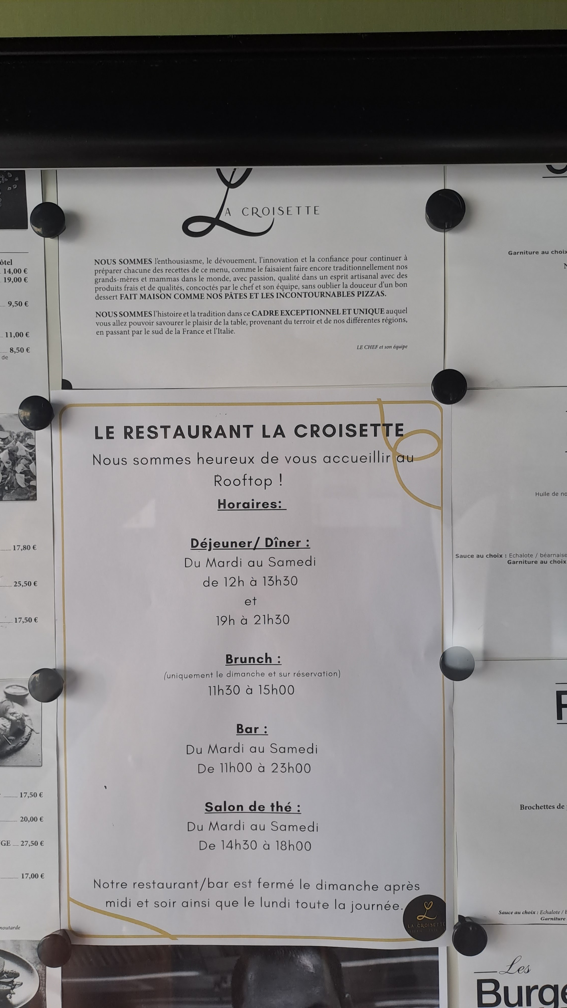Ayant réservé une table pour 8 pour ce dimanche midi nous avions 7 chaises au lieu de 8 ! Ça commençait bien ! Nous avons refermé la porte de la terrasse qui provoquait un courant d air la responsable du bar l a réouverte en prétextant : il vaut mieux 2 personnes qui ont froid plutôt qu' un restaurant entier qui a trop chaud ! OUTRAGEANT pour un anniversaire de 87 ans ! Après un repas très moyen on nous a pressé de régler et de partir . Première et dernière fois pour la CROISETTE Je ne suis du style à poster des commentaires négatifs mais là ça me paraissait nécessaire de le faire