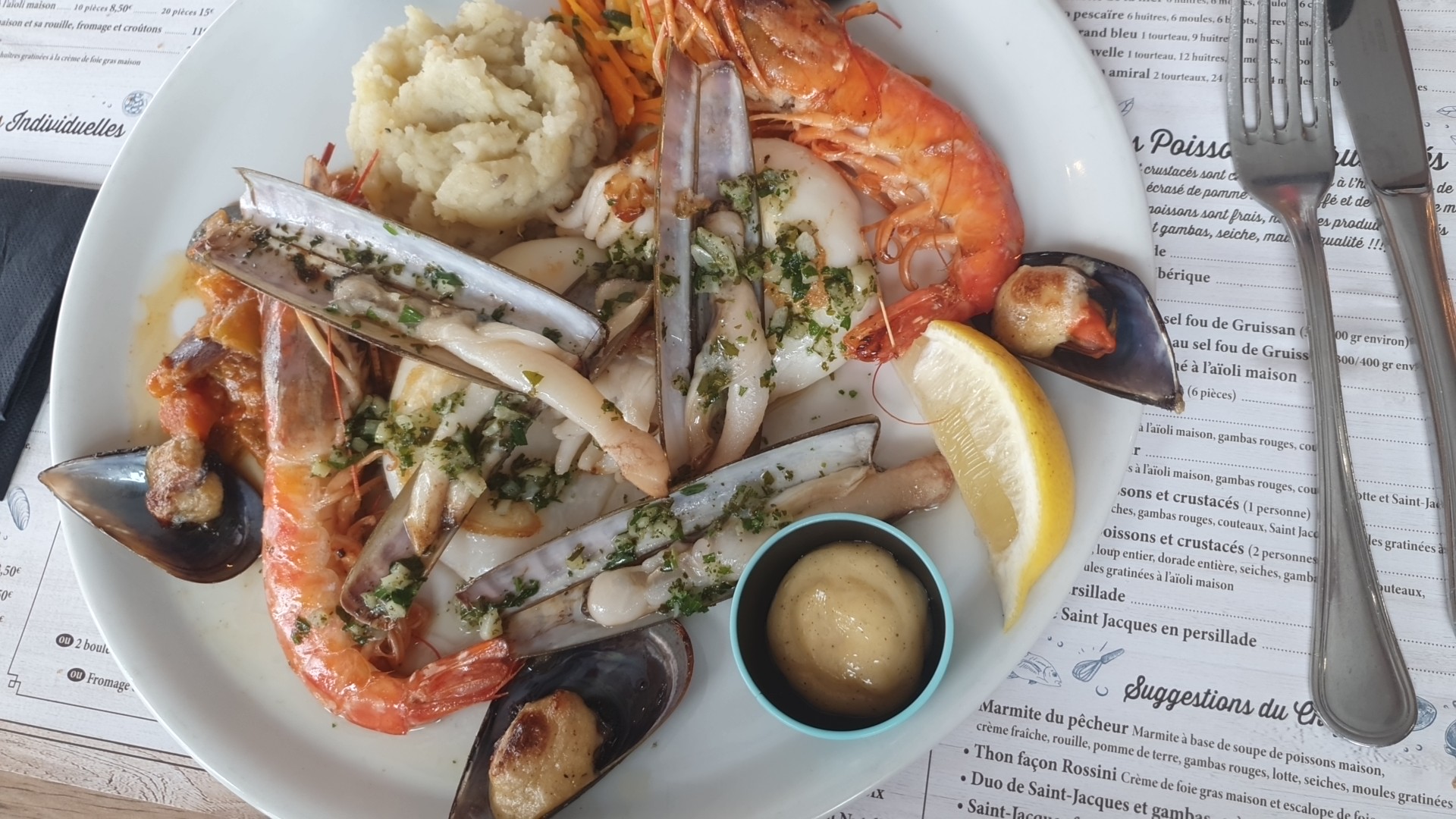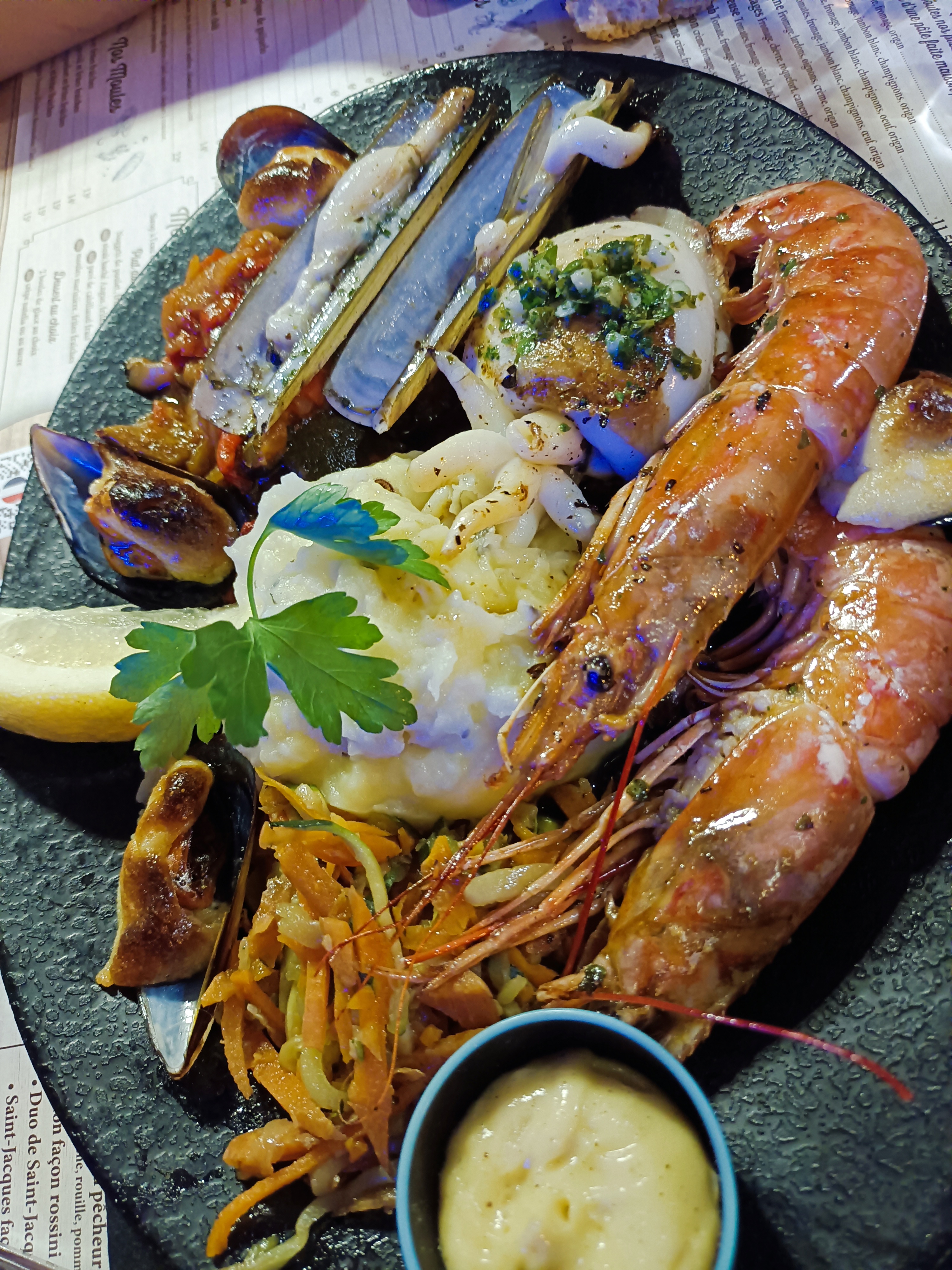 fruits de mer délicieux, personnel sympa, je tiens à vous remercier, tout va bien