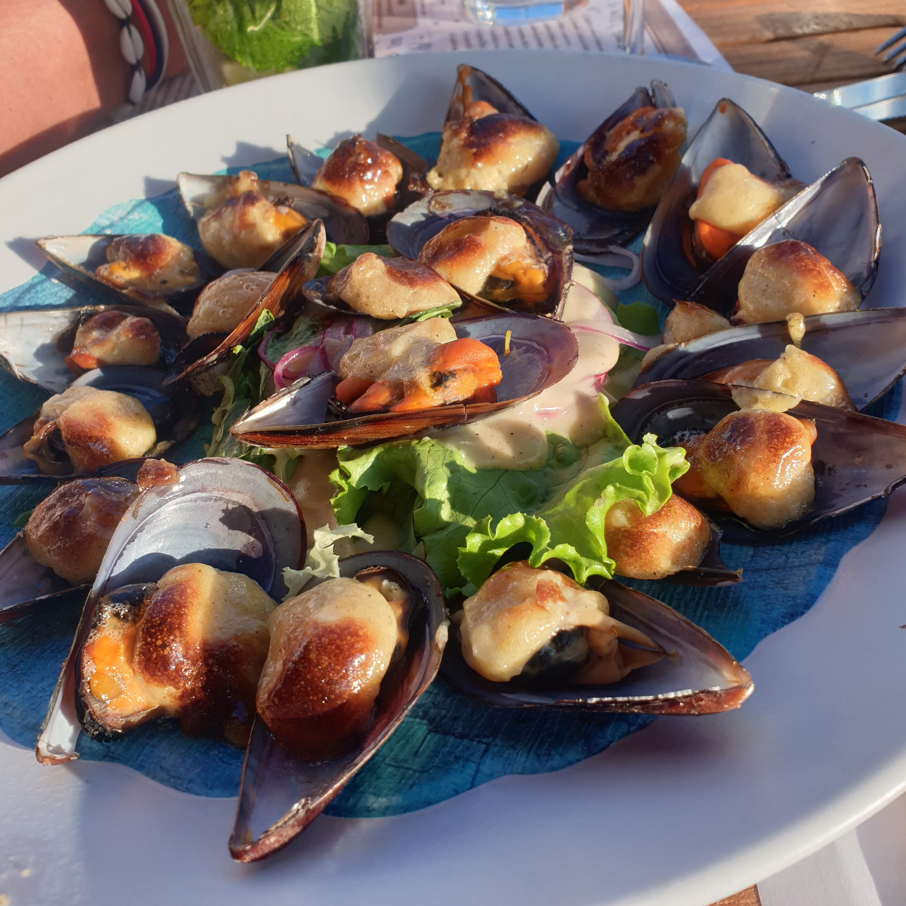 En général nous nous méfions un peu des restaurants très touristiques mais celui-ci a été une agréable surprise.La cuisine est bonne pour un menu servi le soir à 25e .Certains plats,en dehors des fameuses moules, sont originaux et recherchés. Le vin en bouteille ou pichet délicieux et très abordable.Contents de cette expérience ,nous avons réservé pour le lendemain une bouillabaisse pour deux(même si ce n'est pas vraiment la région).Le plat est énorme, très bien garni et savoureux. Le service est agréable et professionnel,rien ne manque.Merci pour les tapas offerts pour l'apéritif.