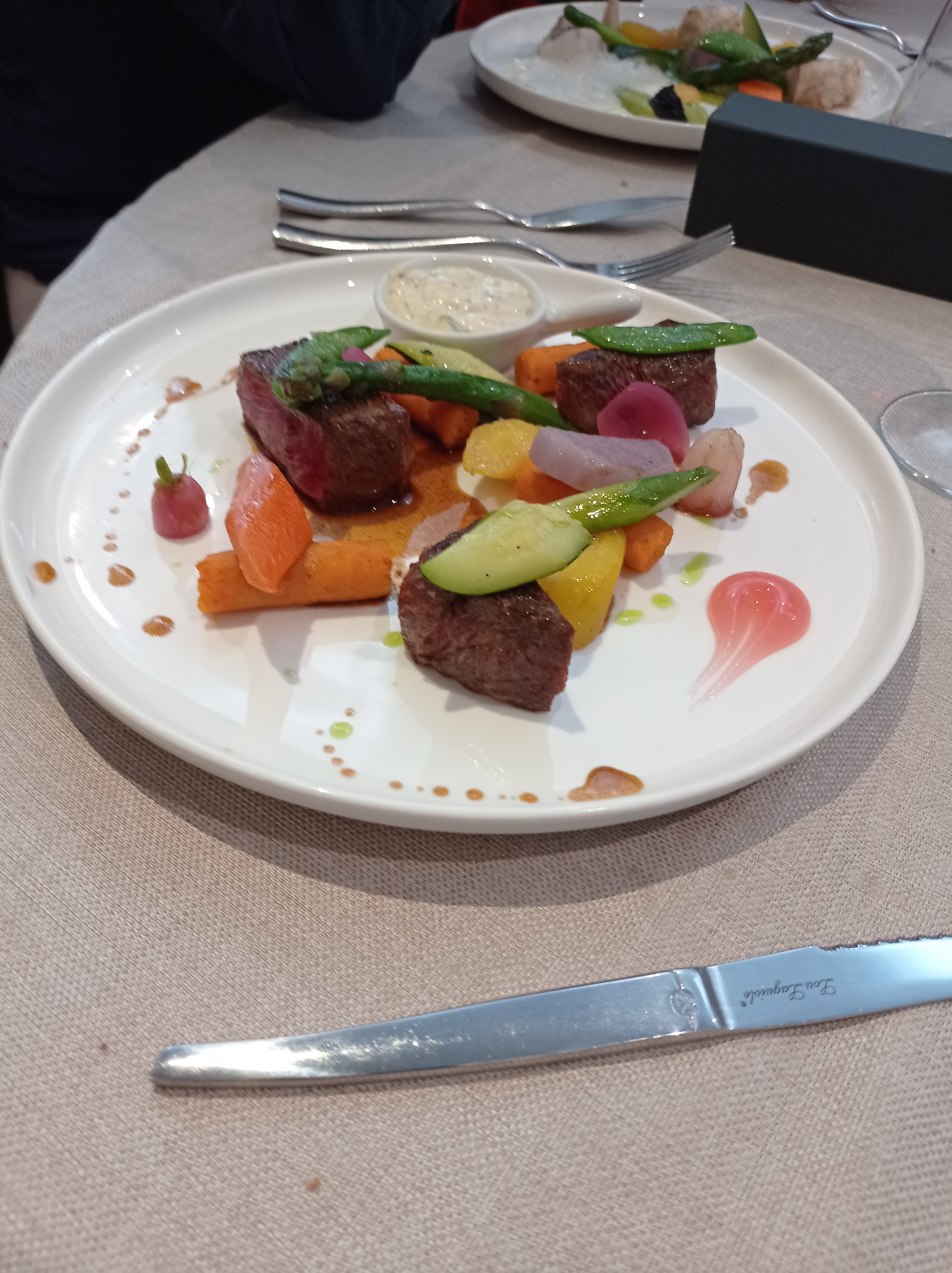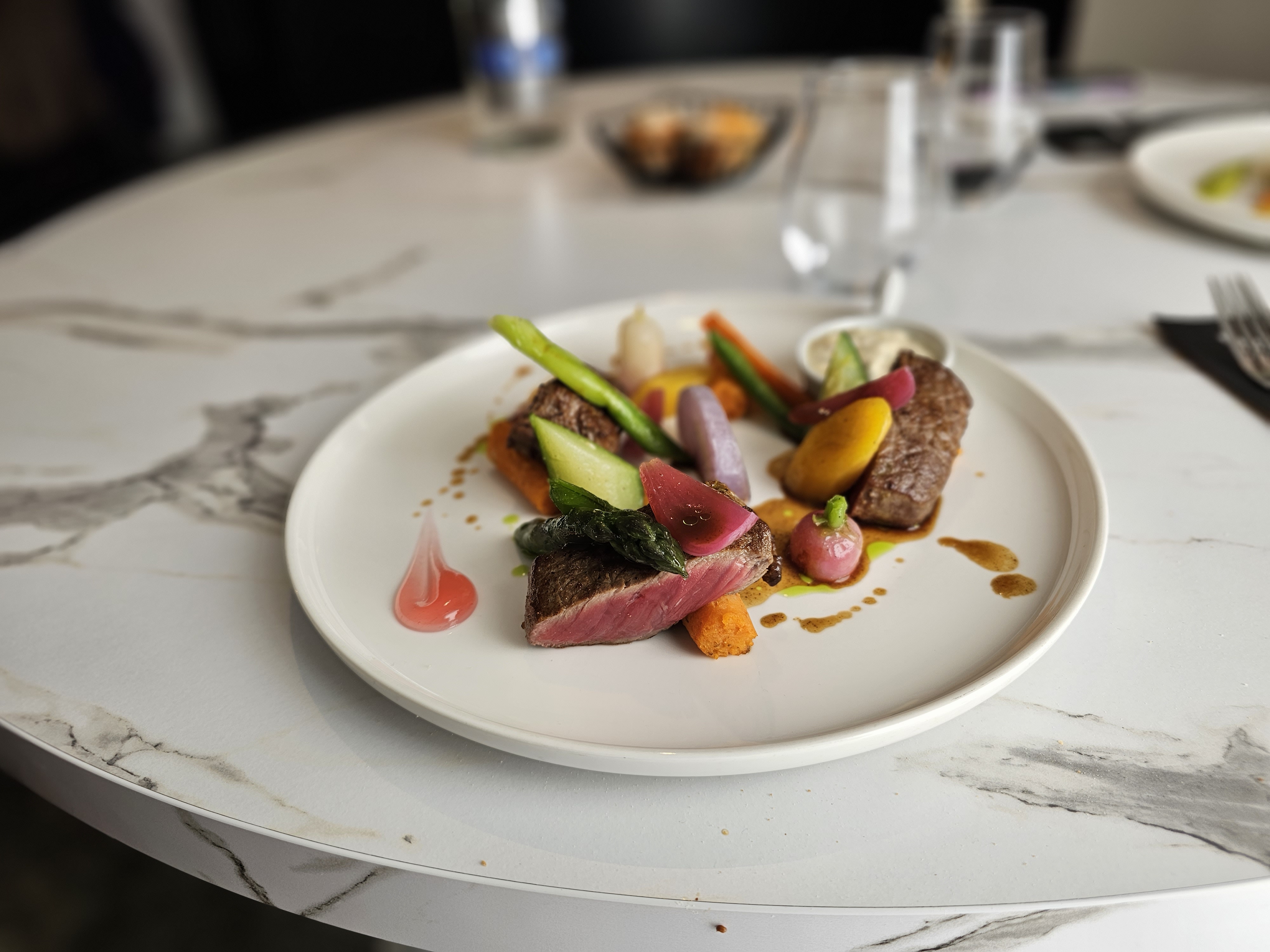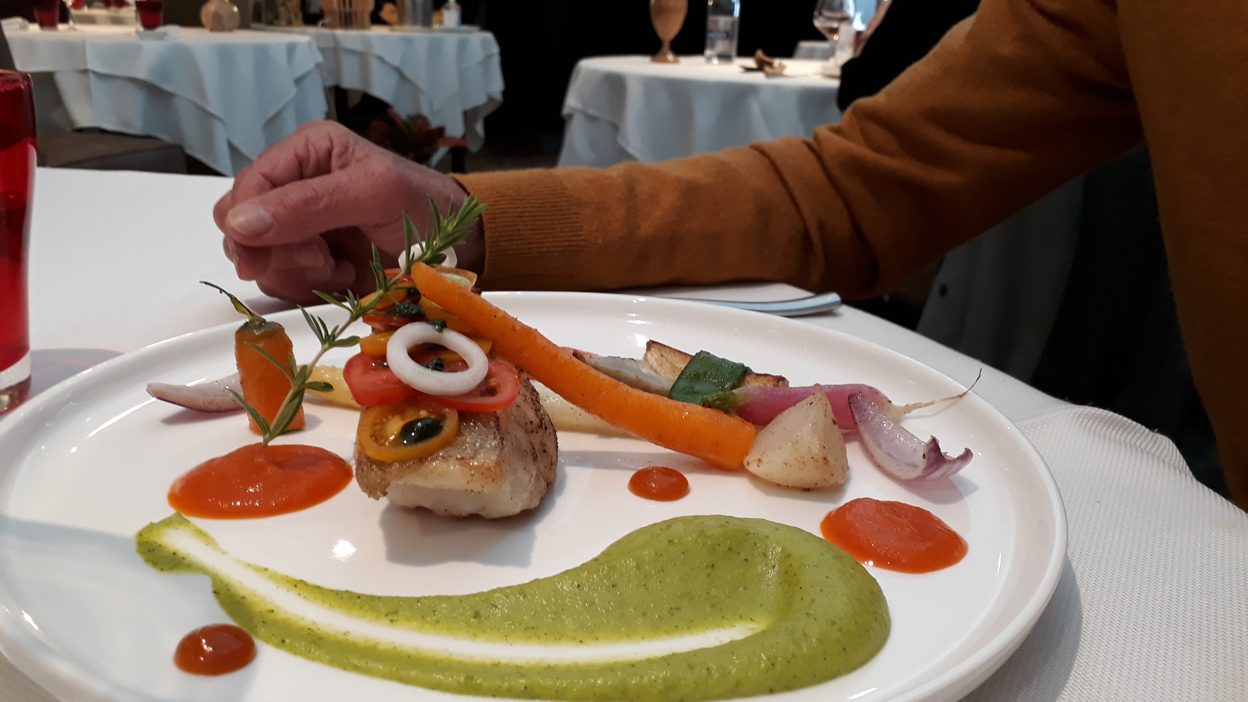 Plats ressemblants à des œuvres d art, très bonne nourriture, personnels très compétents , beaucoup de travail dans les assiettes. A recommandé