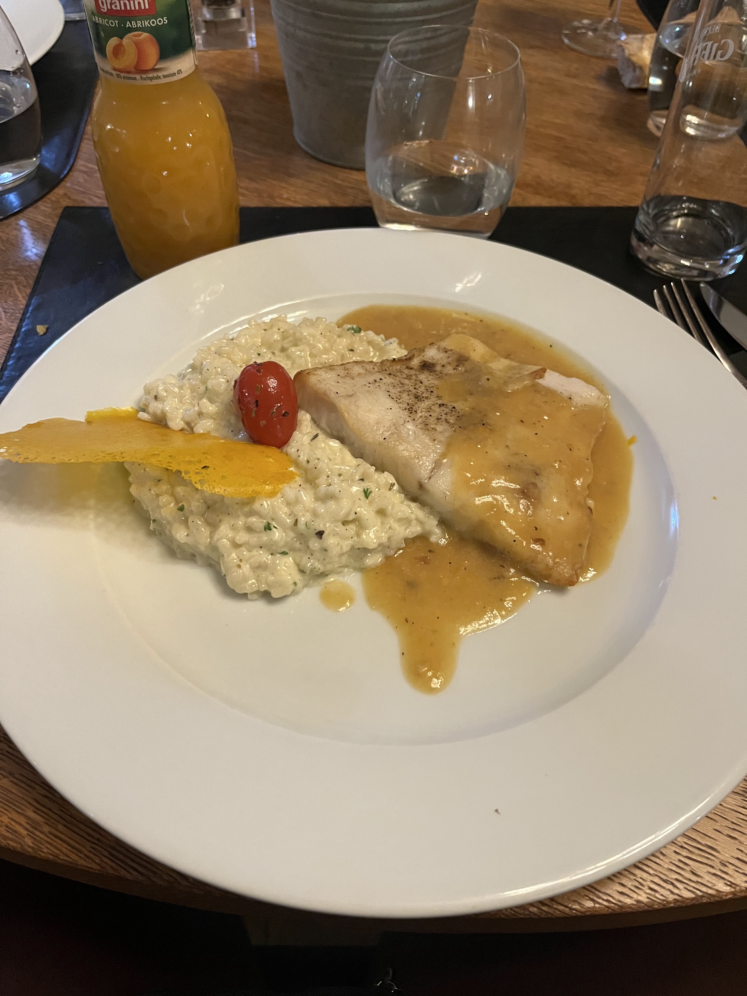 Délicieux dîner sur une belle terrasse arrière de ce petit village endormi. La nourriture et l'ambiance étaient excellentes et cela aurait obtenu 4 étoiles sans le service épouvantable et horrible. Horrible. Nous avons attendu plus d'une heure juste pour que notre eau et notre vin soient servis. Encore 40 minutes après que nous ayons clairement terminé nos entrées pour que nos assiettes soient débarrassées.