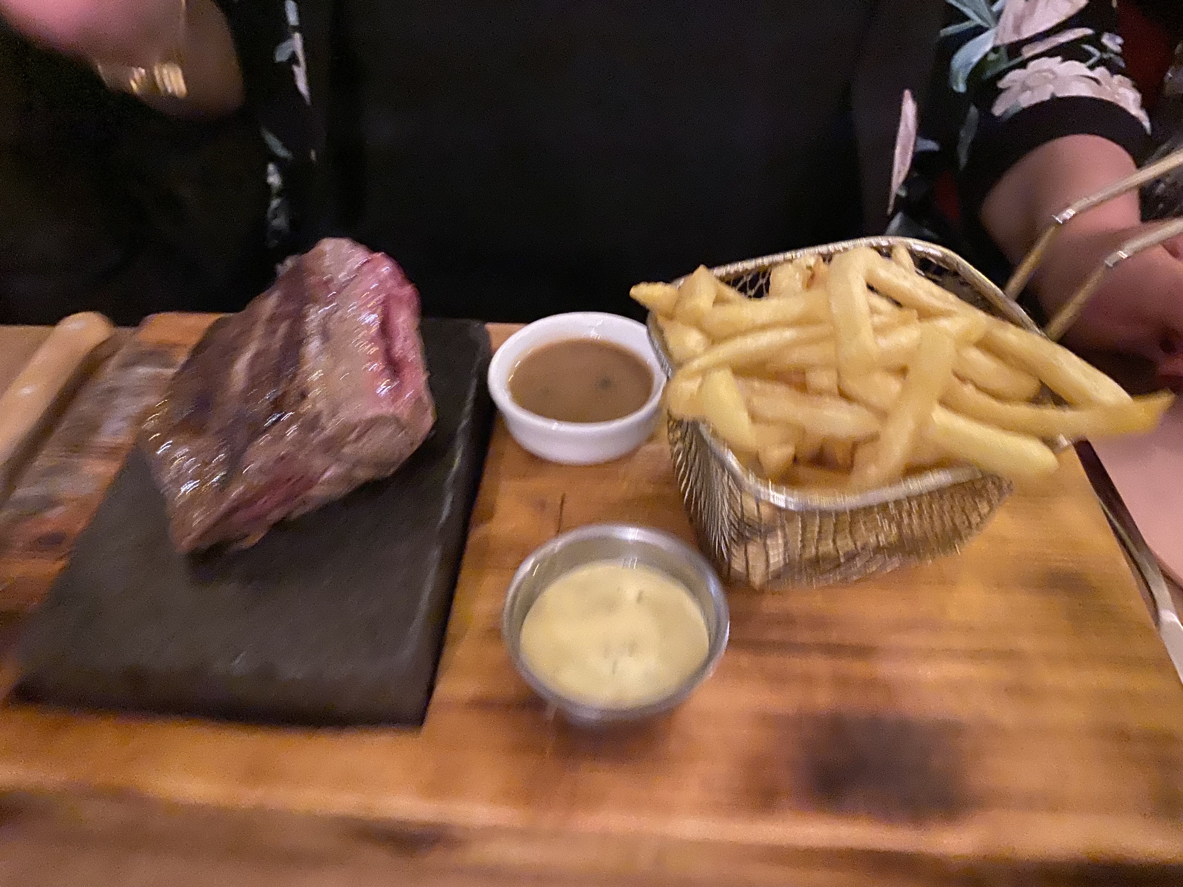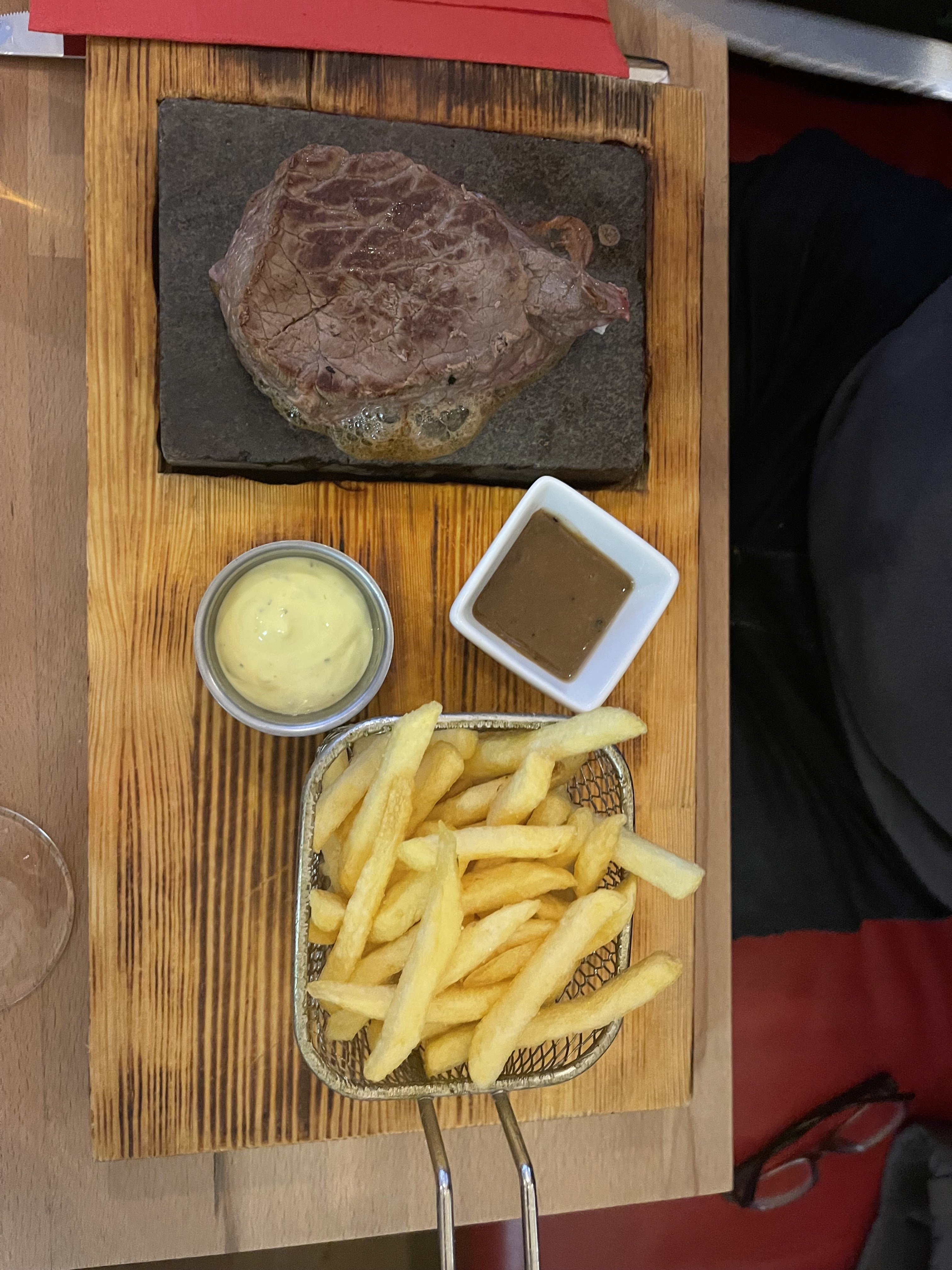 J'ai passé un super moment, comme un coq en pâte ! Pavé de bœuf sur pierre, je me suis régalée 😋. Un accueil comme on aimerait en trouver plus souvent....