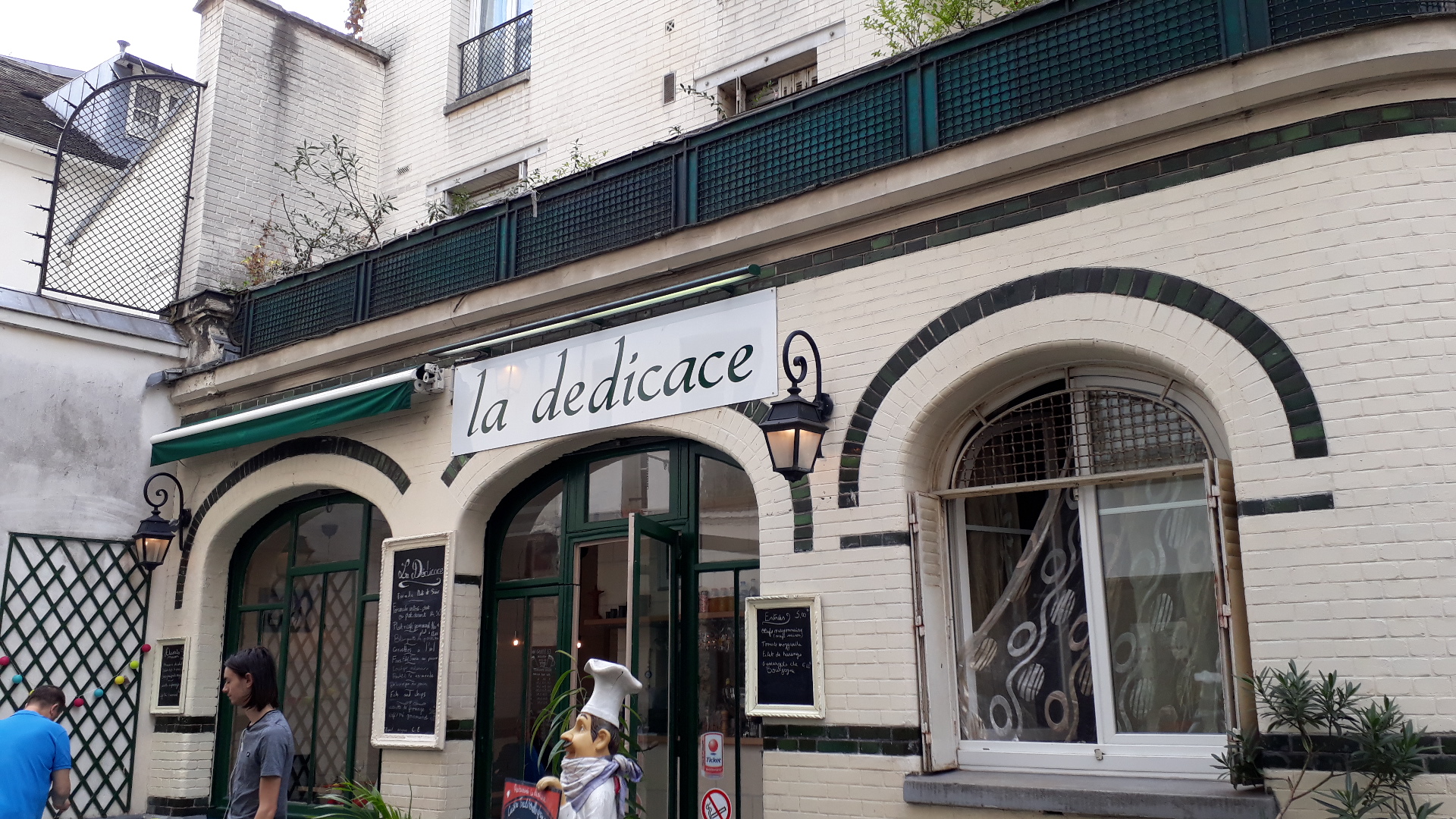 Le restaurant La Dédicace est situé à proximité du Panthéon dans une petite rue légèrement en retrait de la rue de la Montagne Ste Geneviève ce qui apporte tranquillité. Un calme qui peut être apprécié. La résa a été faite en ligne! Parfait de ce côté. Sans compter que l'on peut modifier par la suite. La terrasse sur la rue est agréable car pratiquement pas de passage. L'intérieur est petit mais chaleureux. Le patron est accueillant et j'apprécie la simplicité. On est à l'aise. On se sent bien. Le menu bistro propose une cuisine maison simple et savoureuse. Les assiettes sont bien présentées. Il y a juste la quantité qu'il faut. Ici tartare de boeuf, salade végétarienne profiteroles, tiramisu et Kfé gourmand. Le service assuré par le patron est parfait. Ni trop long ni trop rapide. Les prix sont corrects. Dans la fourchette 20 à 30€. Vraiment à découvrir. Une bonne adresse. Nous avons passé un très bon moment.