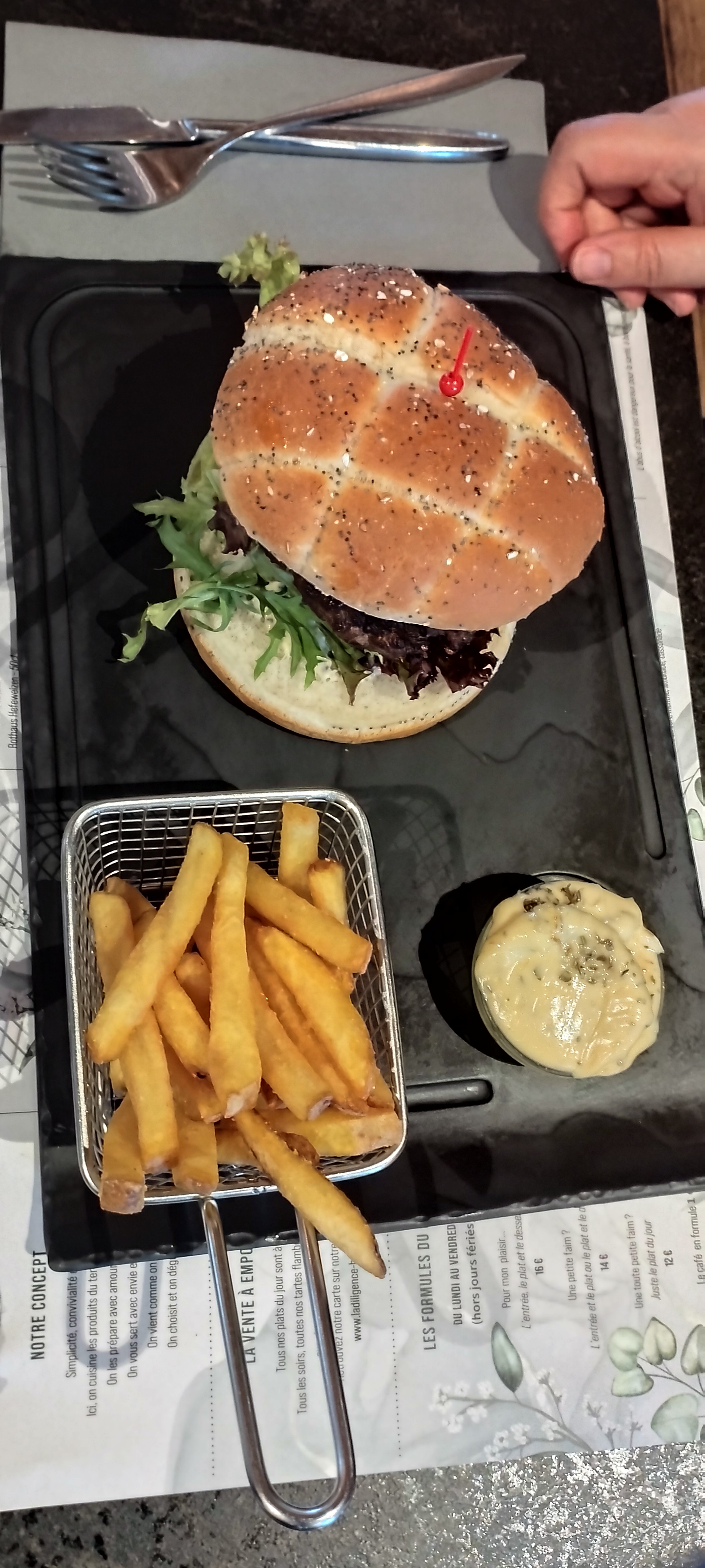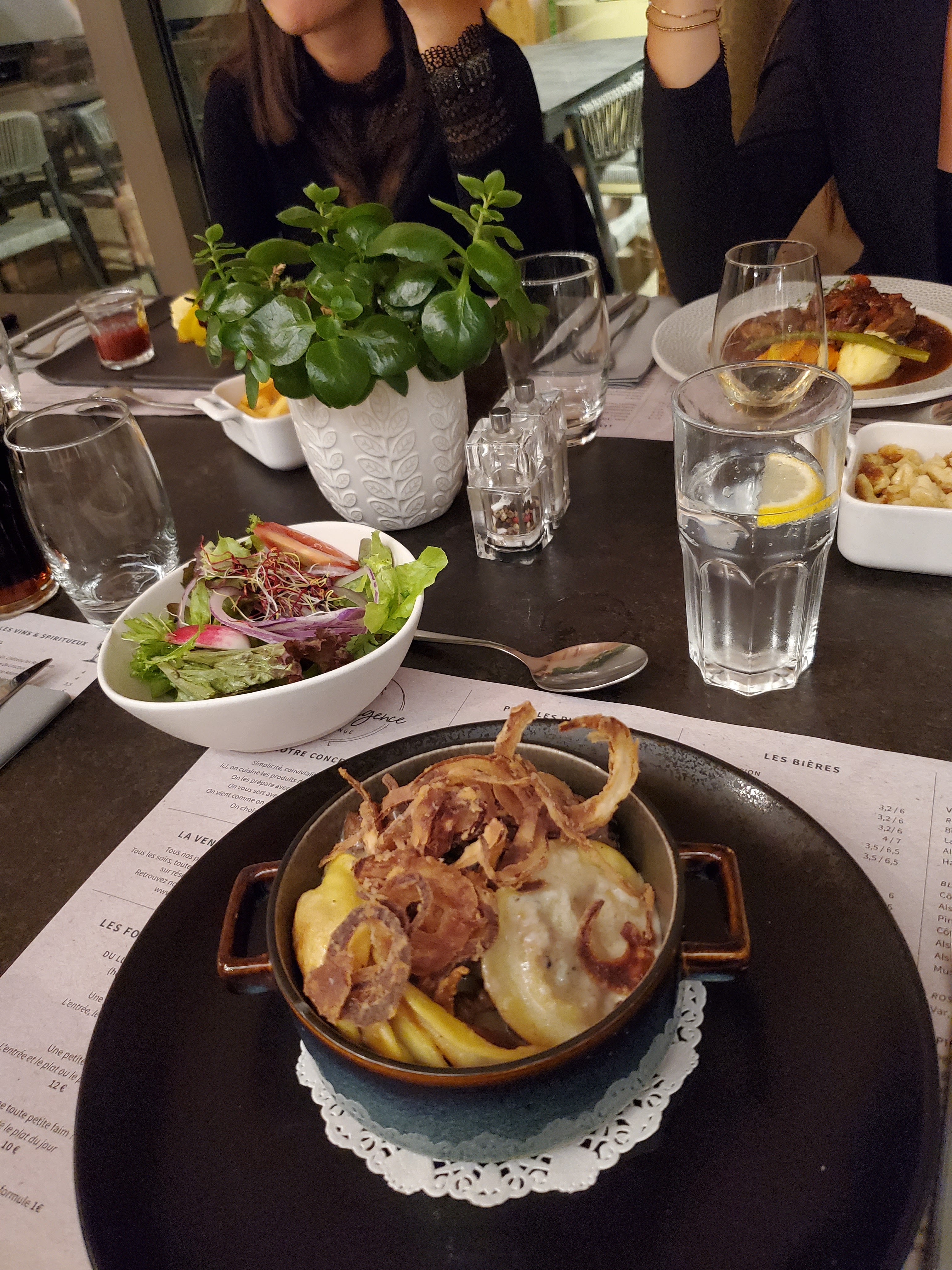 Repas parfait , attention à la demi flamm qui est bien copieuse pour une entrée 😀. Resto au top , nous avons juste trouvé que c'était trop bruyant mais nous reviendrons car c'était vraiment très bon et prix vraiment raisonnable .