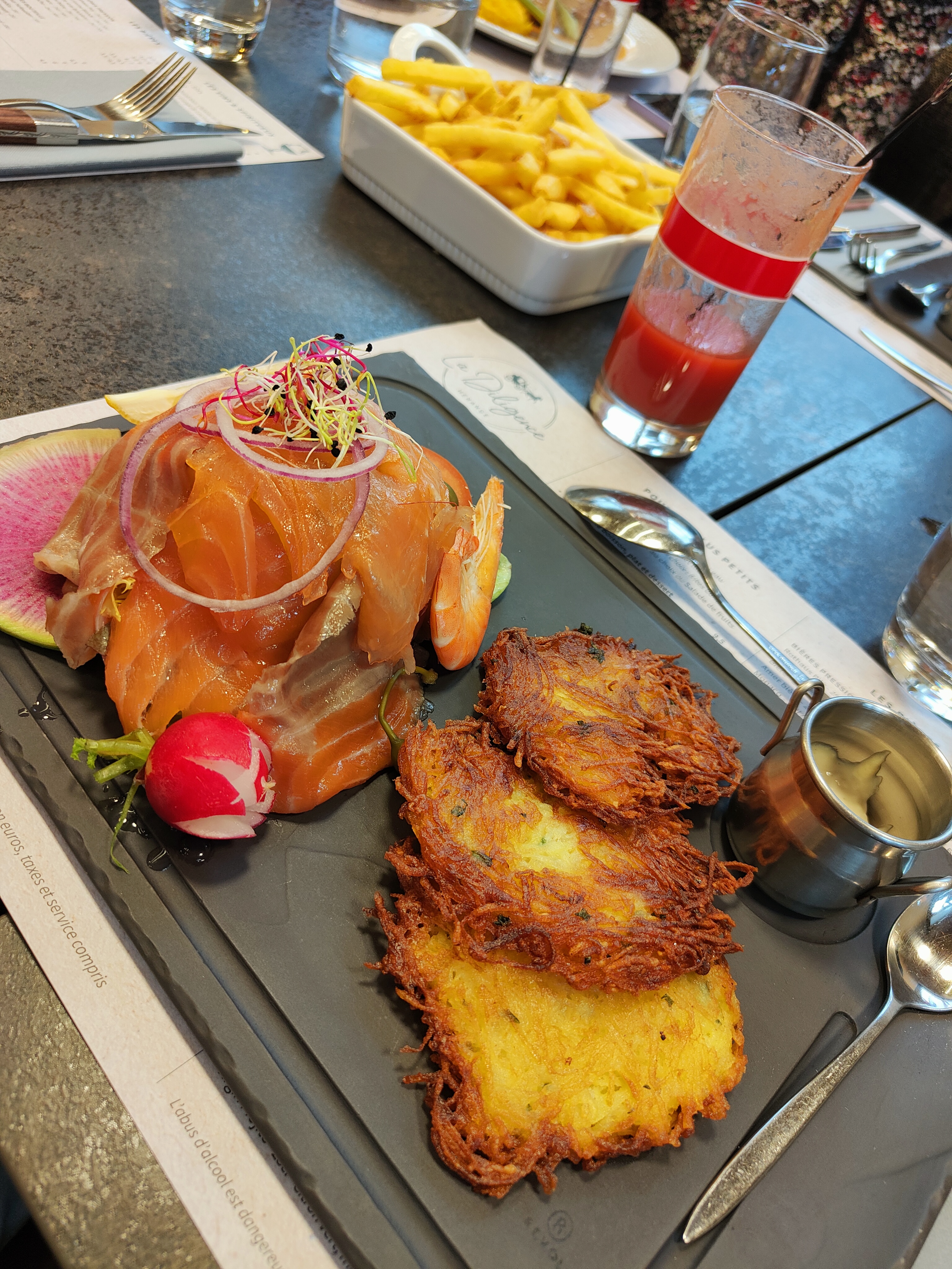 Depuis le temps que j'attendais d'avoir une occasion particulière pour tester la diligence, quelle belle surprise ! Tout est parfait, une entrée et devanture qui claquent, un restaurant très chaleureux tant au niveau décor qu'au niveau service et une cuisine à tomber par terre ❤️ Nous reviendrons c'est certain Mention particulière pour la patronne 😘