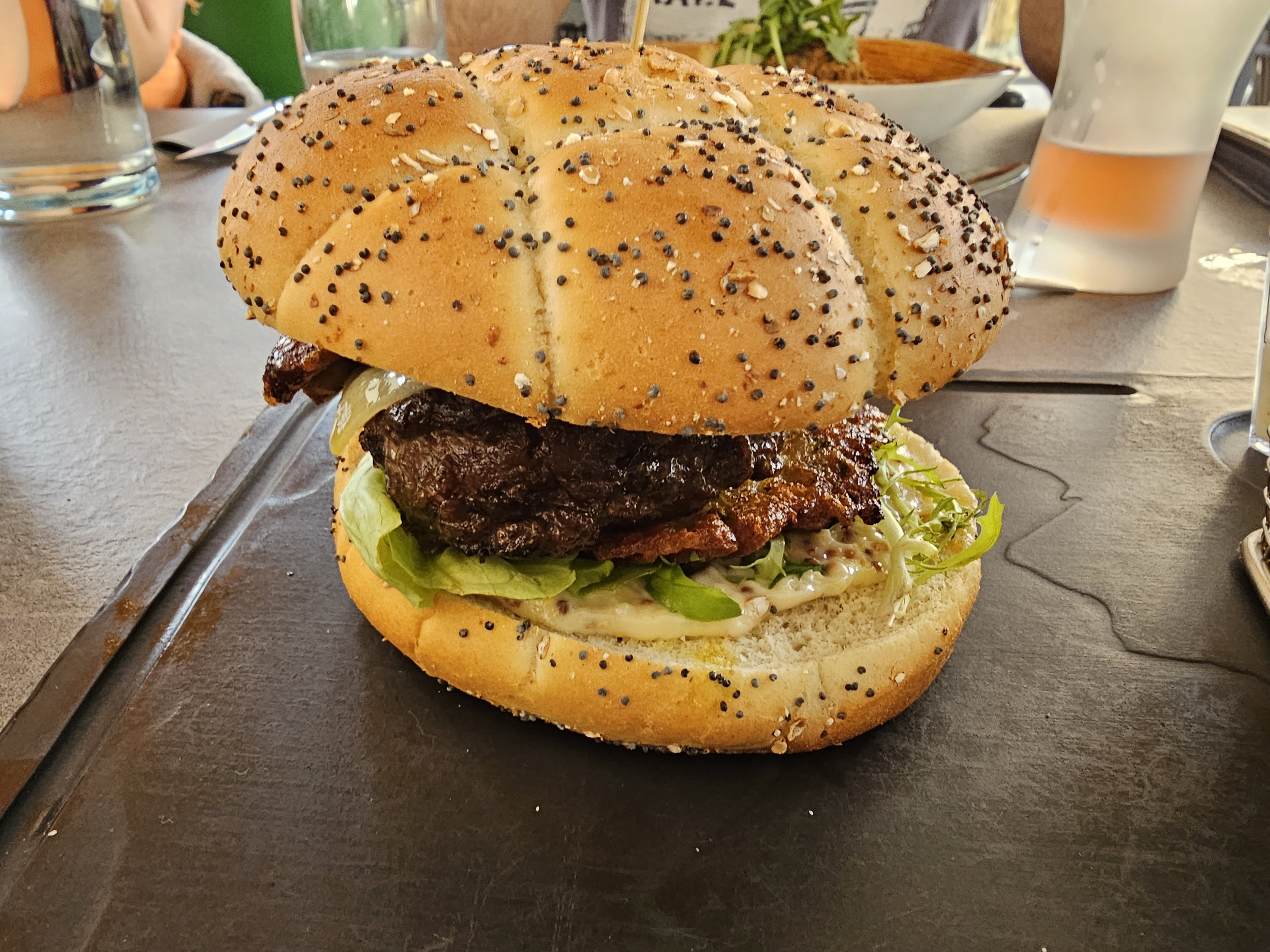 Trop d attente service débordé pas assez de carafe d eau de pichet de vin de verre à bière et pas assez à manger.
