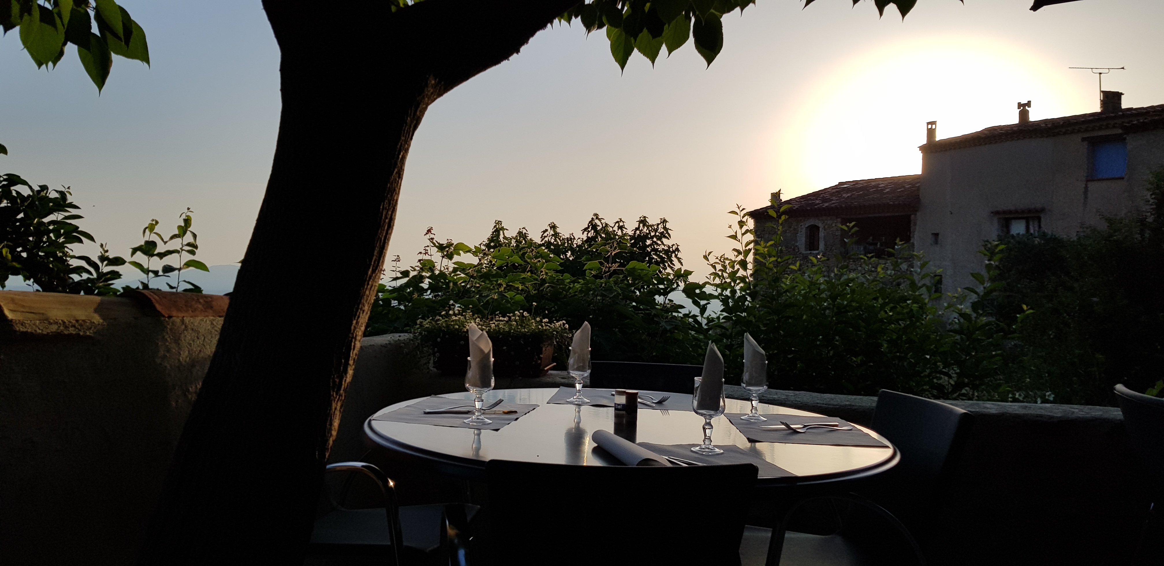 Excellent restaurant. Accueil génial. Vue depuis la terrasse impressionnante. Nous sommes arrivés juste un peu trop tard pour le couché de soleil qui aurait dû être magnifique. Si vous passez vers Tourtour n'hésitez pas à y aller un très bon accueil vous sera réservé.