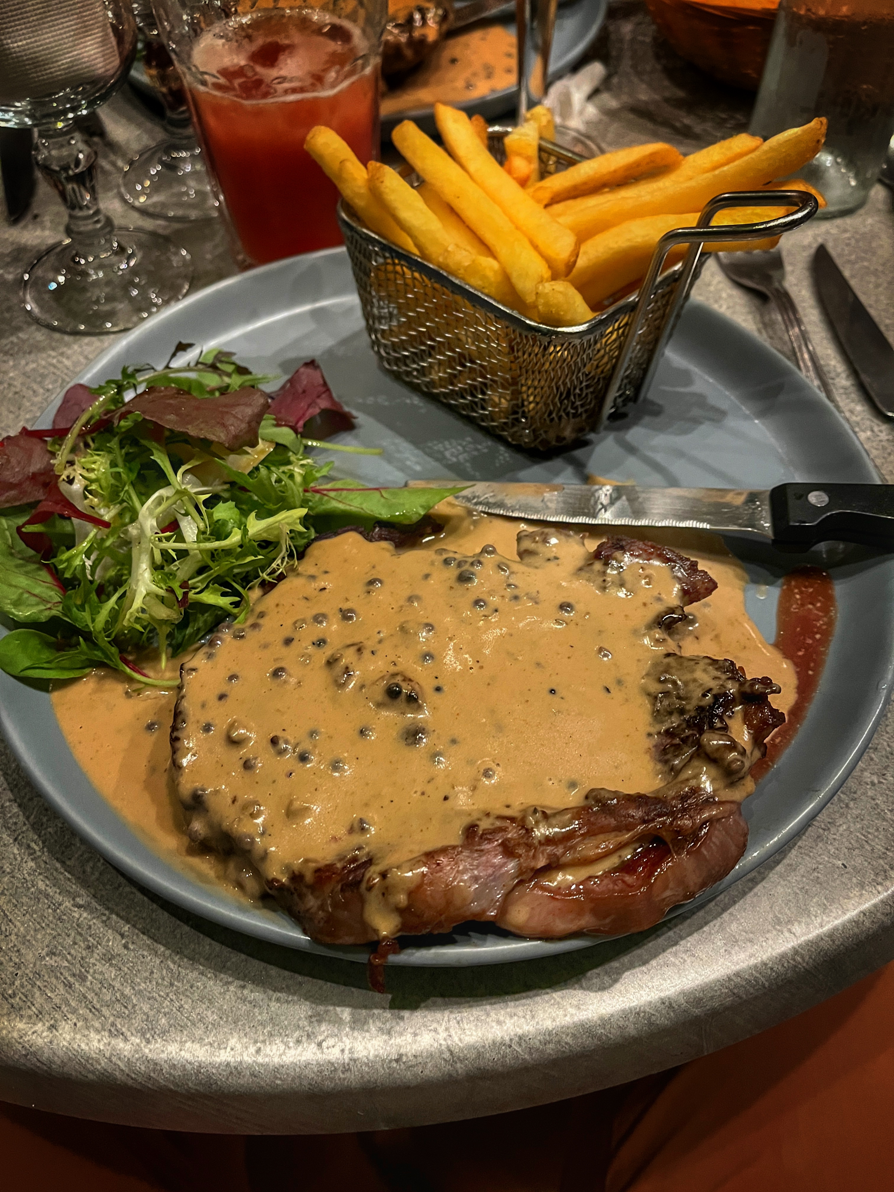 Service impeccable, avec mon époux nous avons pris une entrecôte sauce au poivre et nous nous sommes régalés, la viande est très tendre. Par rapport au prix l'assiette est en conséquence. Je recommande fortement ce restaurant.