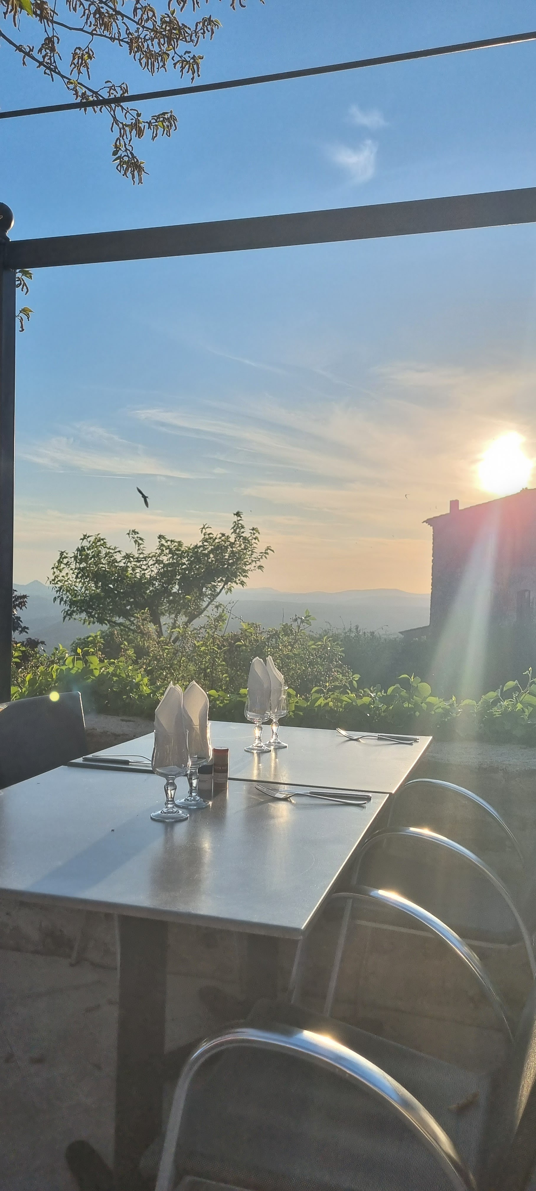 Terrasse avec vue sur la vallée ! C’est beau et cosy à la fois avec les jardins et les chats des voisins. La nourriture était délicieuse et composée de produits et d'ingrédients locaux. Nous avons même eu de la « tête de veau » ! Le personnel était sympathique et parlait suffisamment anglais. Fortement recommandé!