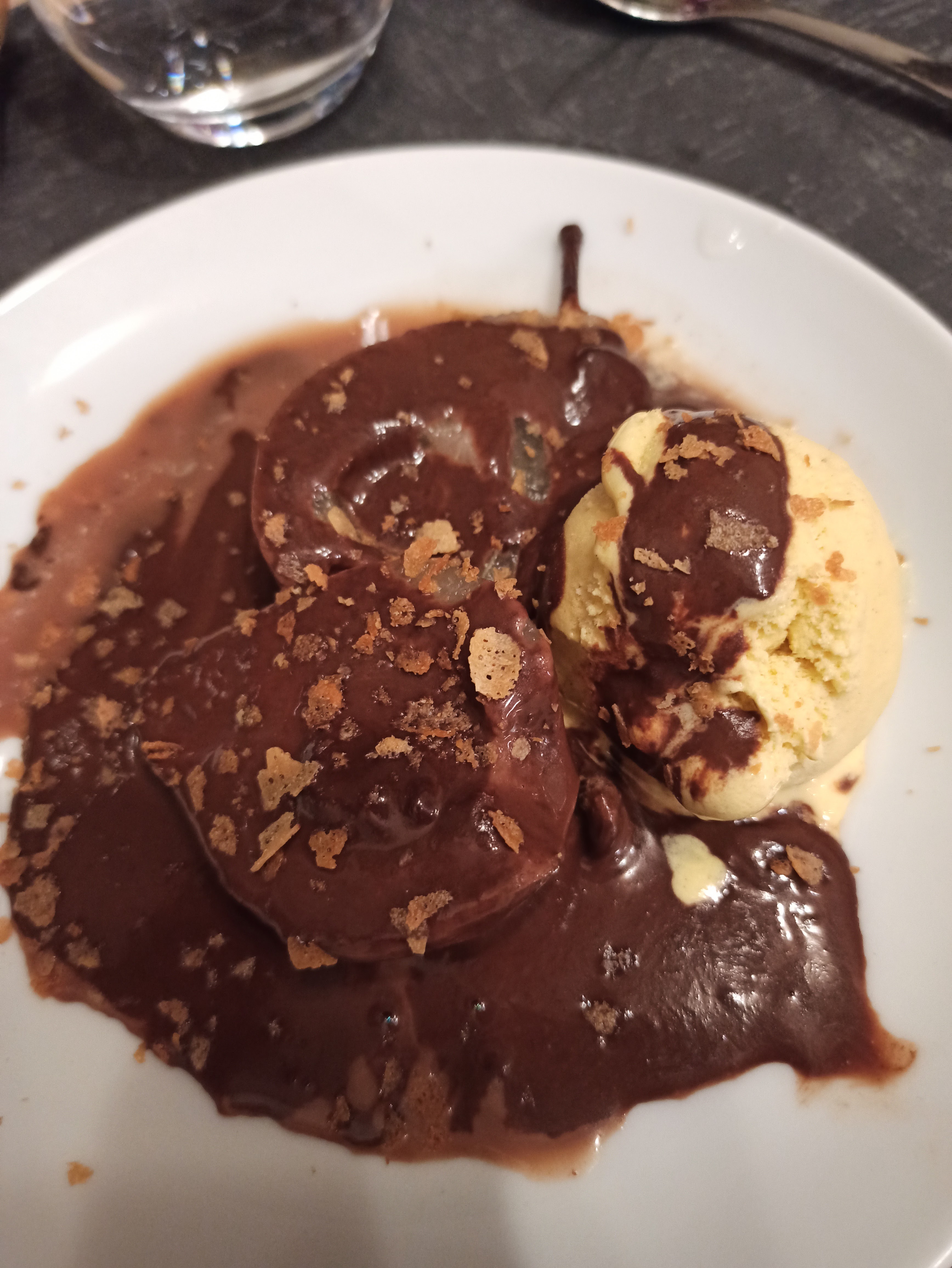 Cadre agréable et calme. Bonne cuisine. Il a seulement manqué un soupçon d'eau de vie de poire avec la poire pochée