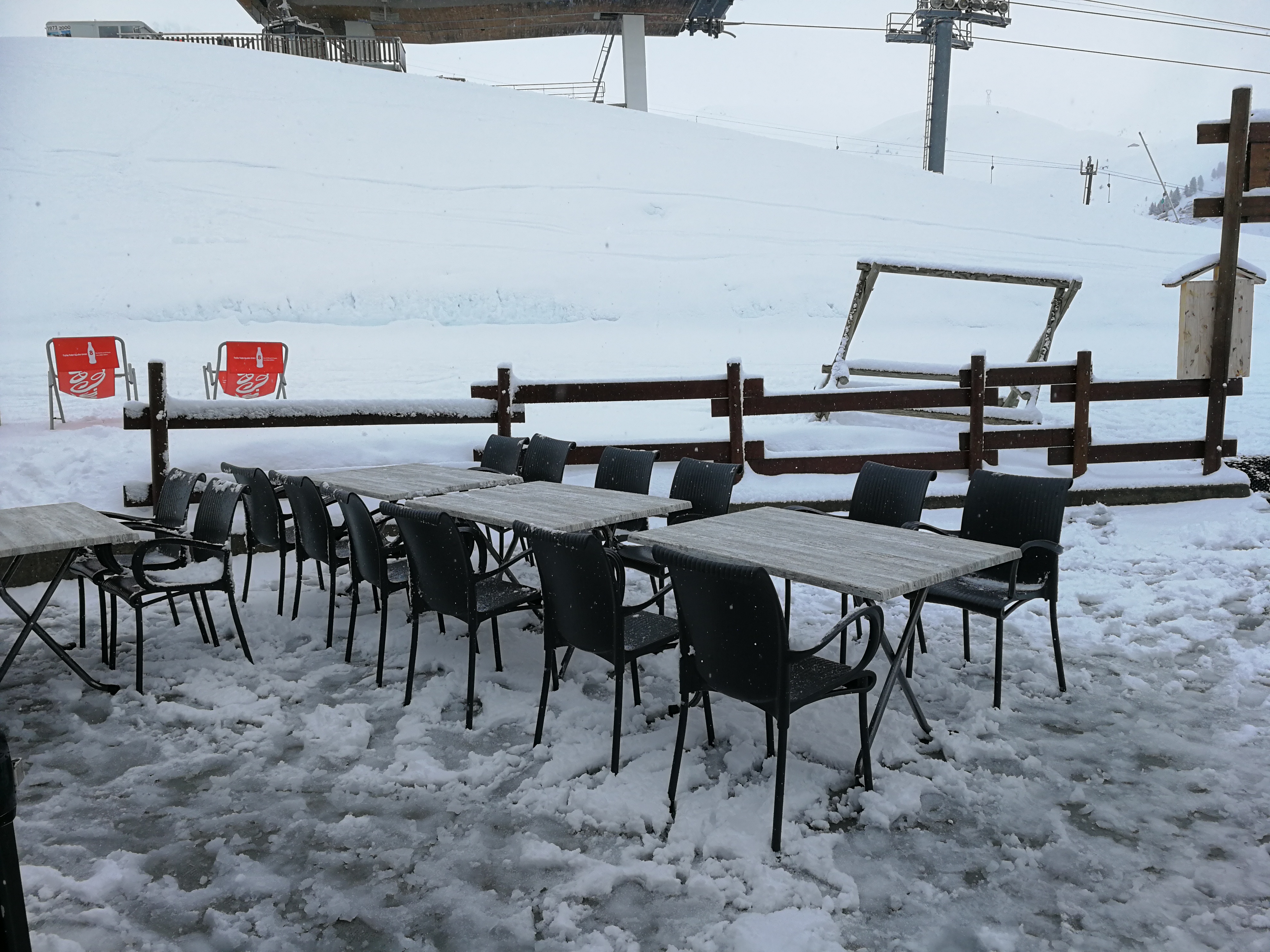 Des toilettes propres toute ma journée ! Le sourire accroché au visage. Un coin bar et un coin restaurant. Une terrasse et des transats pour profiter de la vue magnifique. Face à l'ESF pour les parents qui souhaitent admirer les progrès de leurs bambins en cours d'ourson