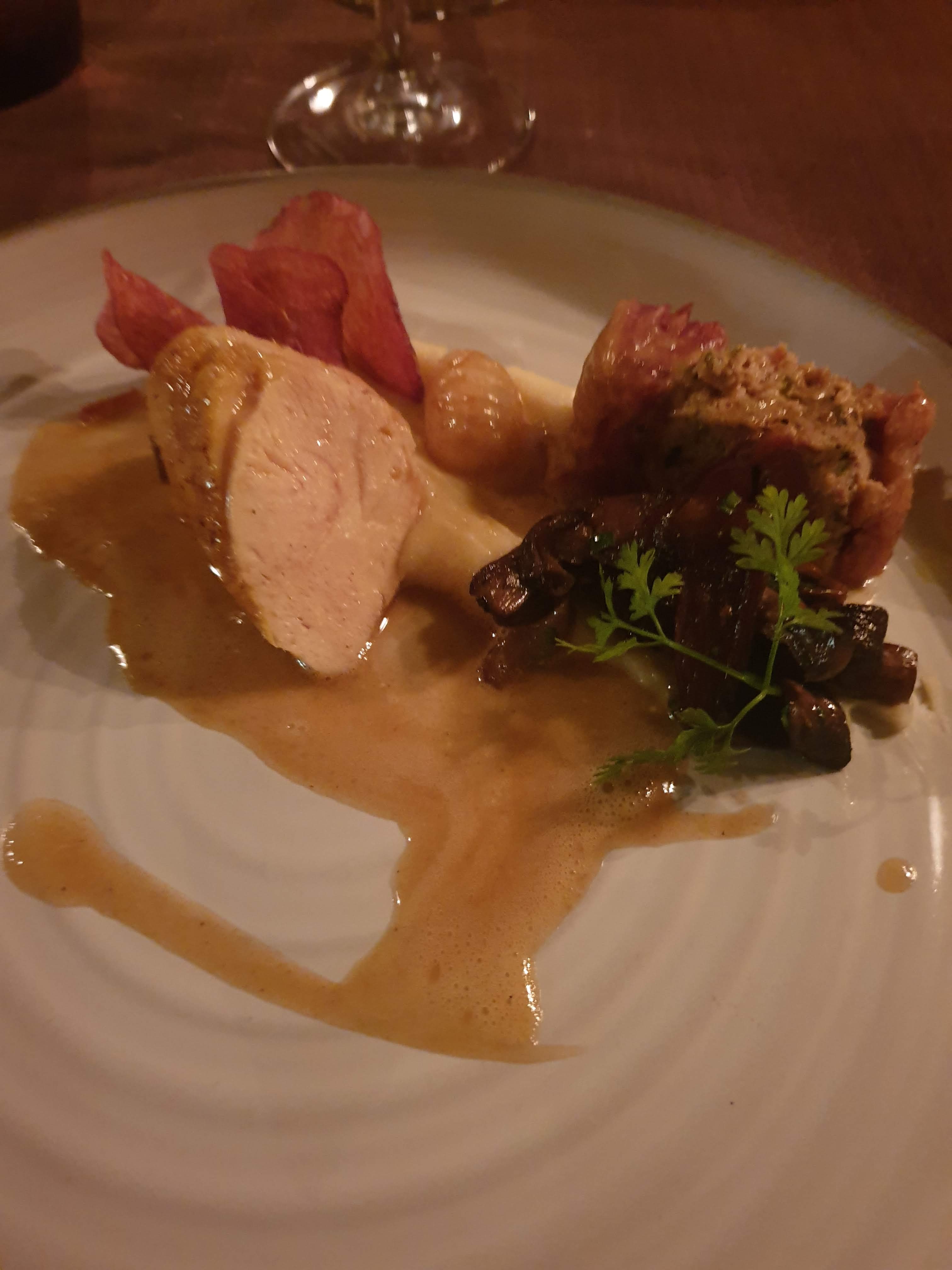 Une vraie cuisine toute en finesse. Un très bon accueil. Je recommande pour les fins gourmets. Photo : pintade au vin jaune