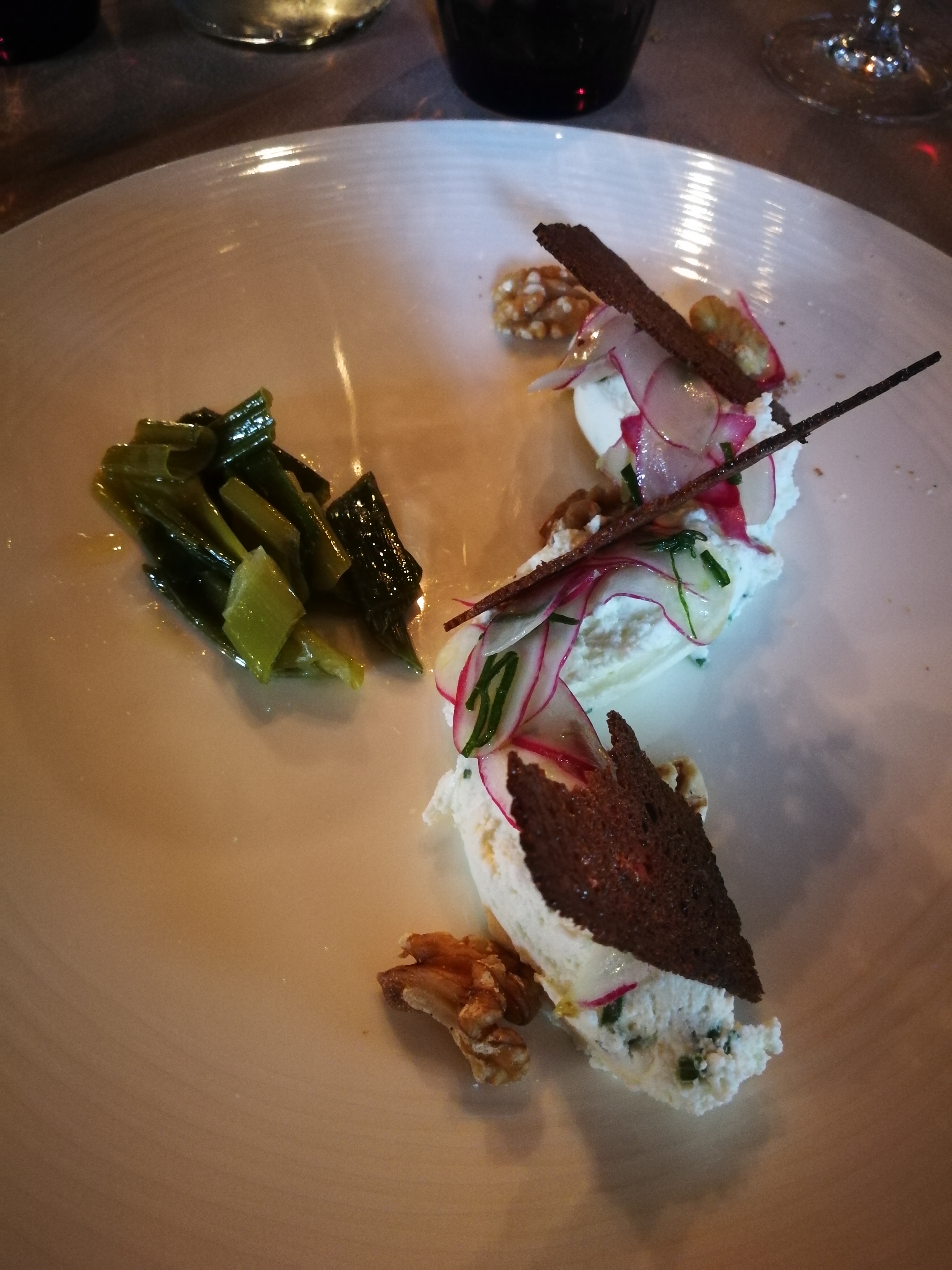 Tout était délicieux ! Pas fan du cocktail maison (kir liqueur de noisette) mais sinon les plats sont un délice. Beaux, bonnes quantités pour pouvoir manger entrée-plat-dessert, avec des produits locaux : petites pommes acidulées avec le feuilleté au reblochon (si je me souviens bien du fromage), herbes mystérieuses, desserte de fromages de Savoie... Belle surprise