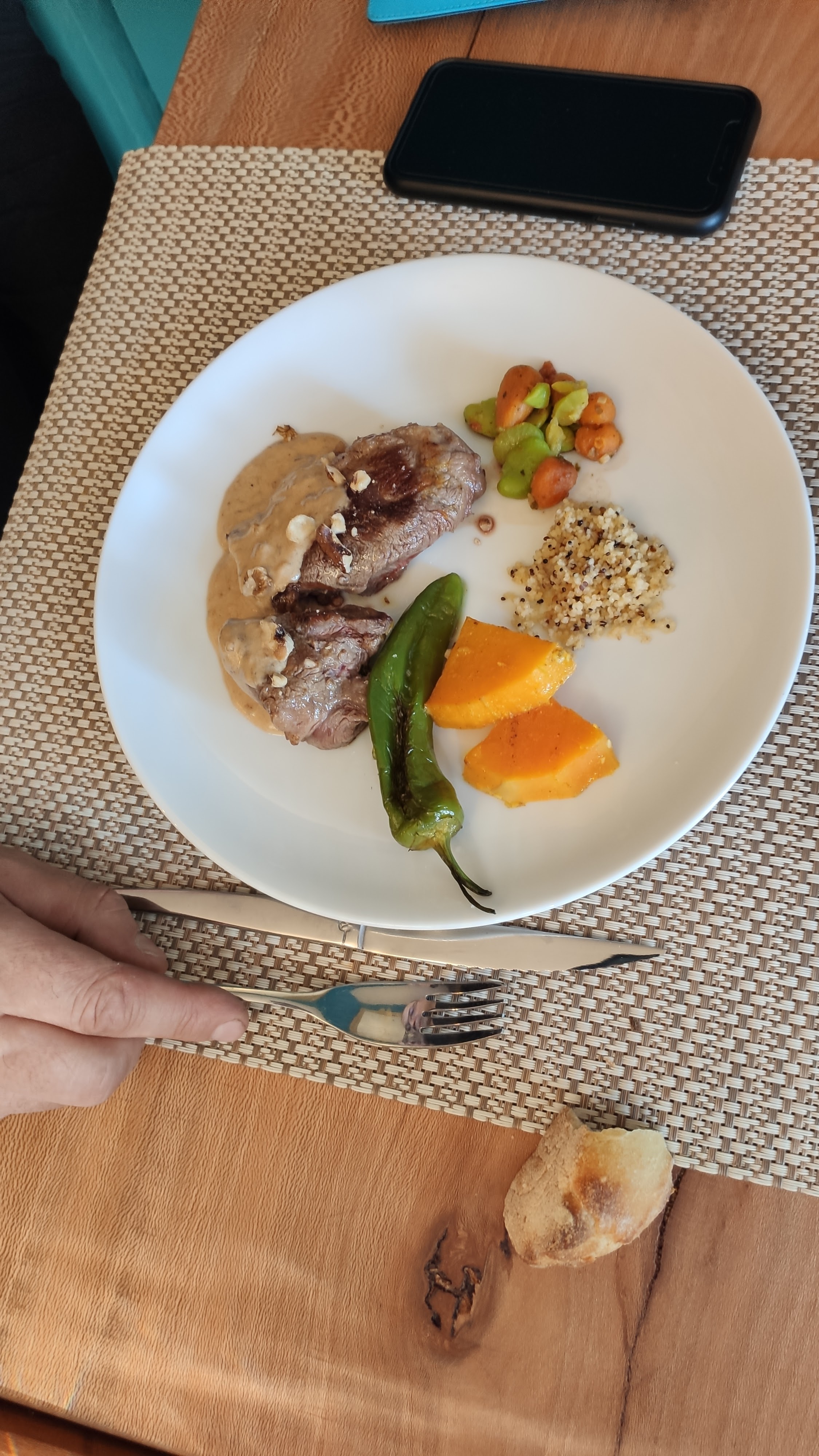 Véritable restaurant local avec une ambiance agréable. Nous avons eu un carré d'agneau et une assiette végétarienne qui étaient tous deux délicieux ! Service bon et attentionné.