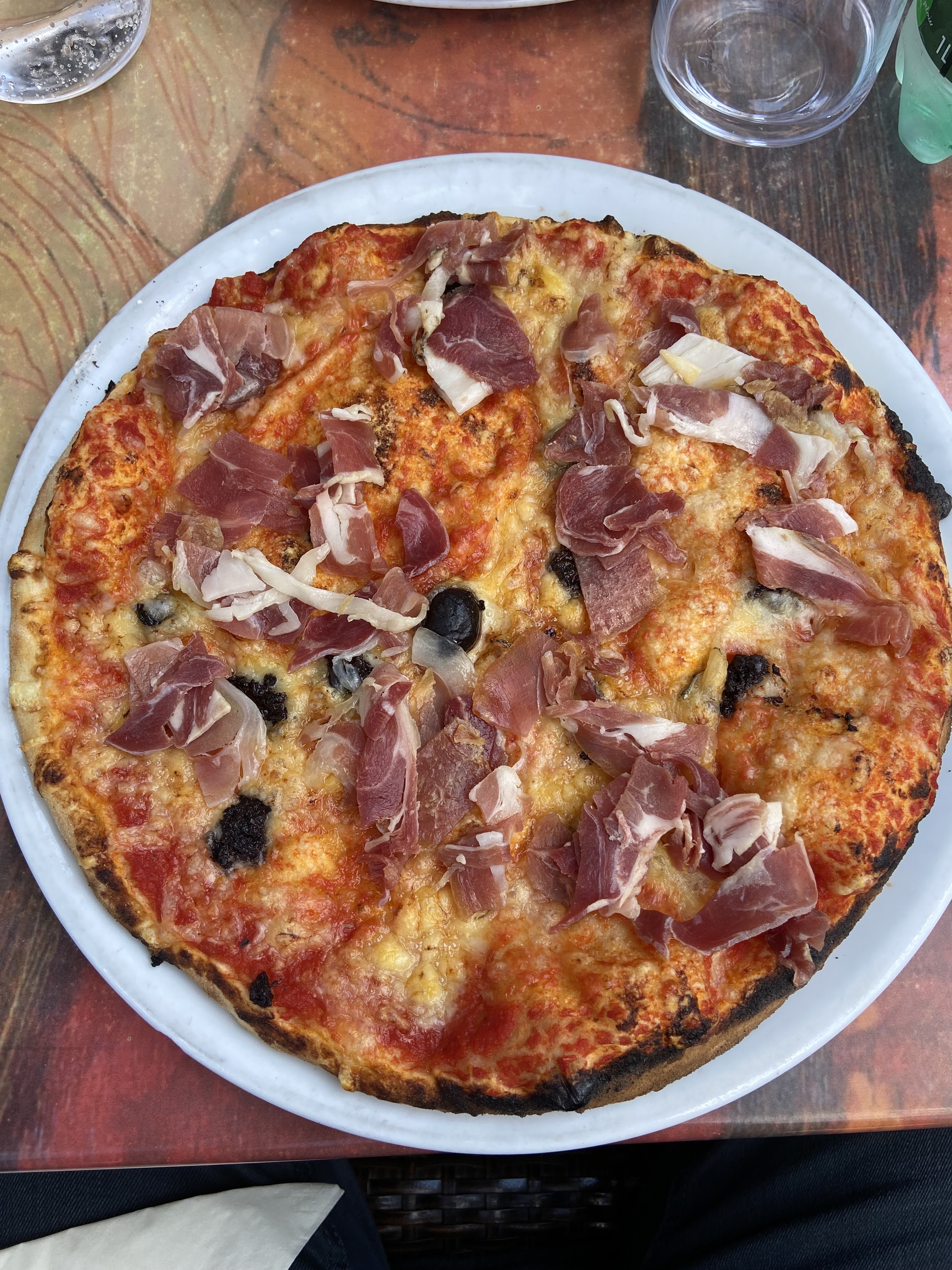 Comment dire, voilà enfin une pizza !!! Excellente parfaite. Pâte fine, une sauce tomate juste ce qu'il faut, un jambon de pays de qualité et enfin une touche de tapenade. Bravo monsieur le pizzaiolo qui a appris tout de son grand père. Merci pour cette excellente pizza.