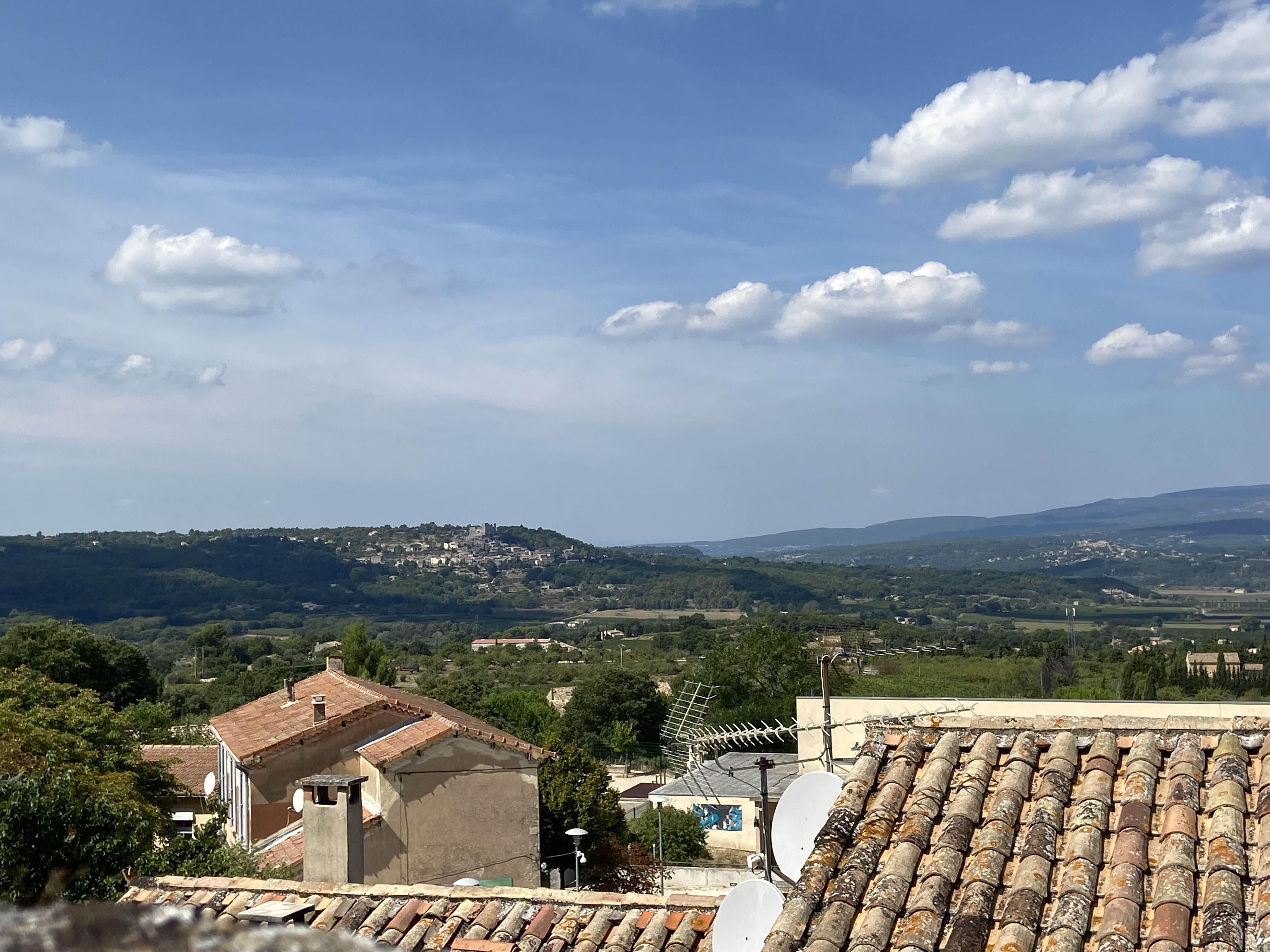 Jolie vue sur la plaine de BONNIEUX de la terrasse.Bonnes pizzas