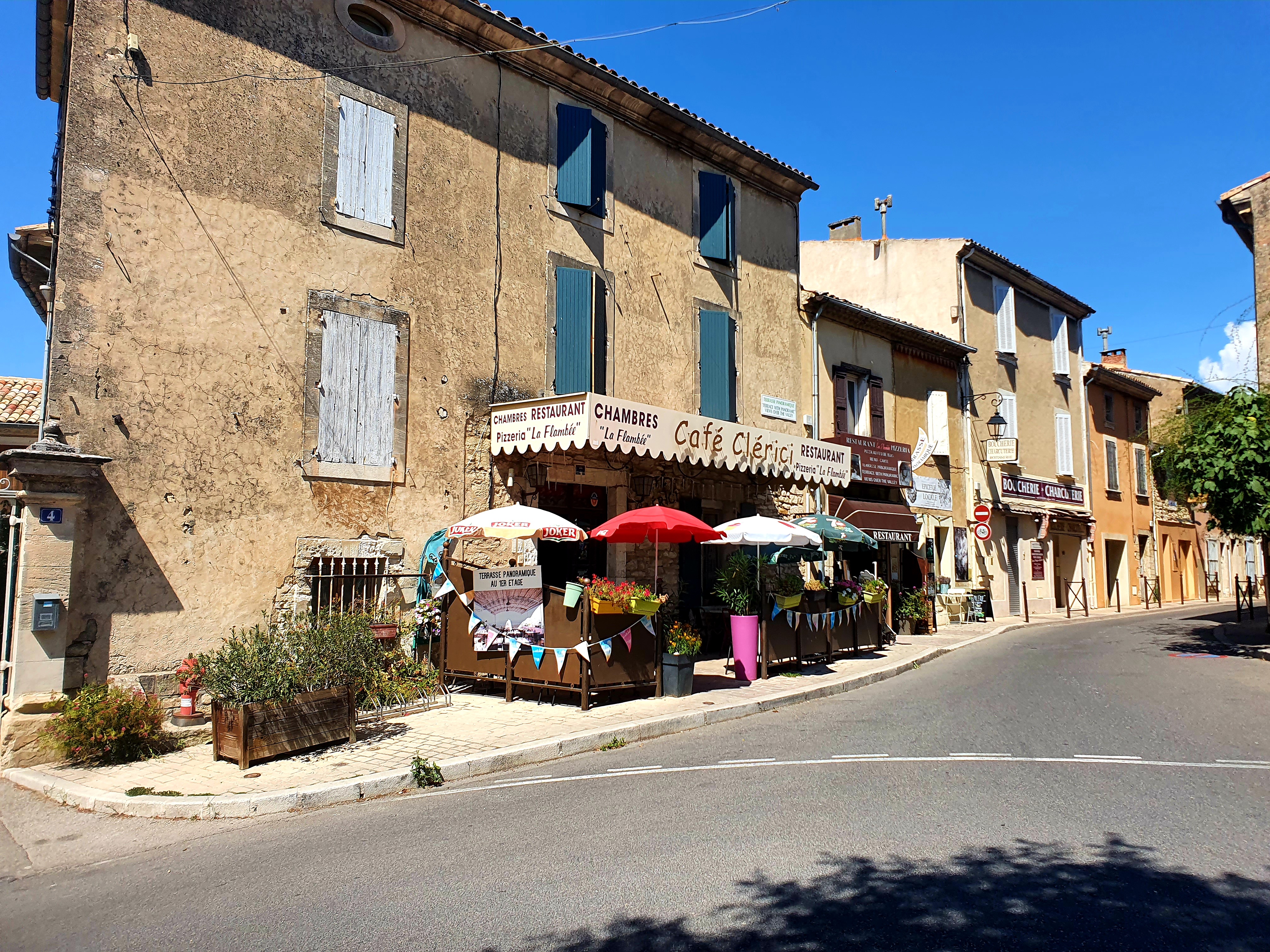 Le restaurant et le bar du rez-de-chaussée sont tenus par une sympathique famille. Le bar est animé et vous pourrez profiter de la vie provençale en terrasse. La nourriture au restaurant est très bonne, tant la pizza que les autres plats. Au sommet se trouve une terrasse avec une vue imprenable sur la belle région.