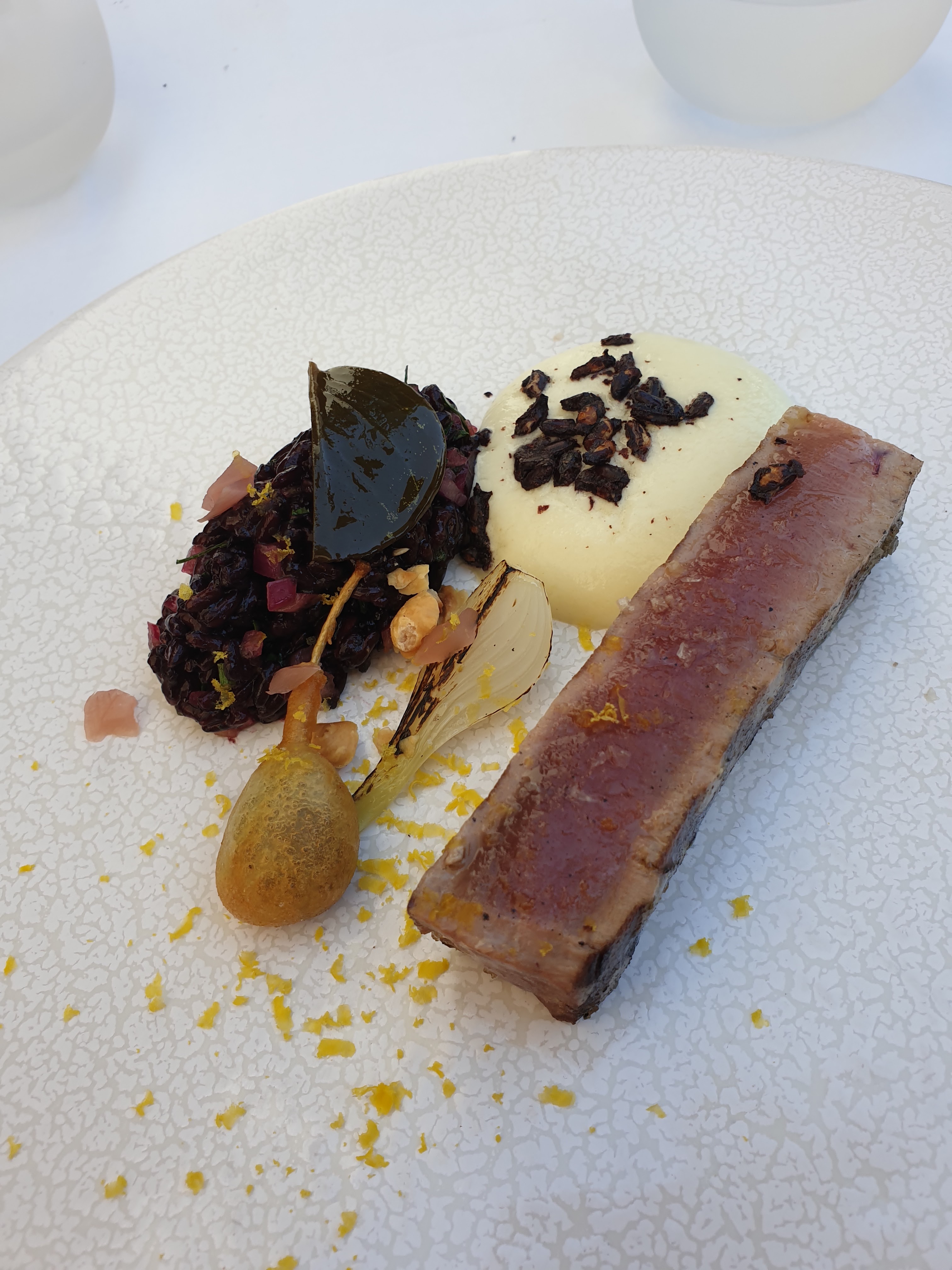 Un repas délicieux. Un agréable mélange de saveurs. Original. Un vin très bien conseillé. Peut-être certains plats un peu trop salés à notre goût ! A refaire 😊