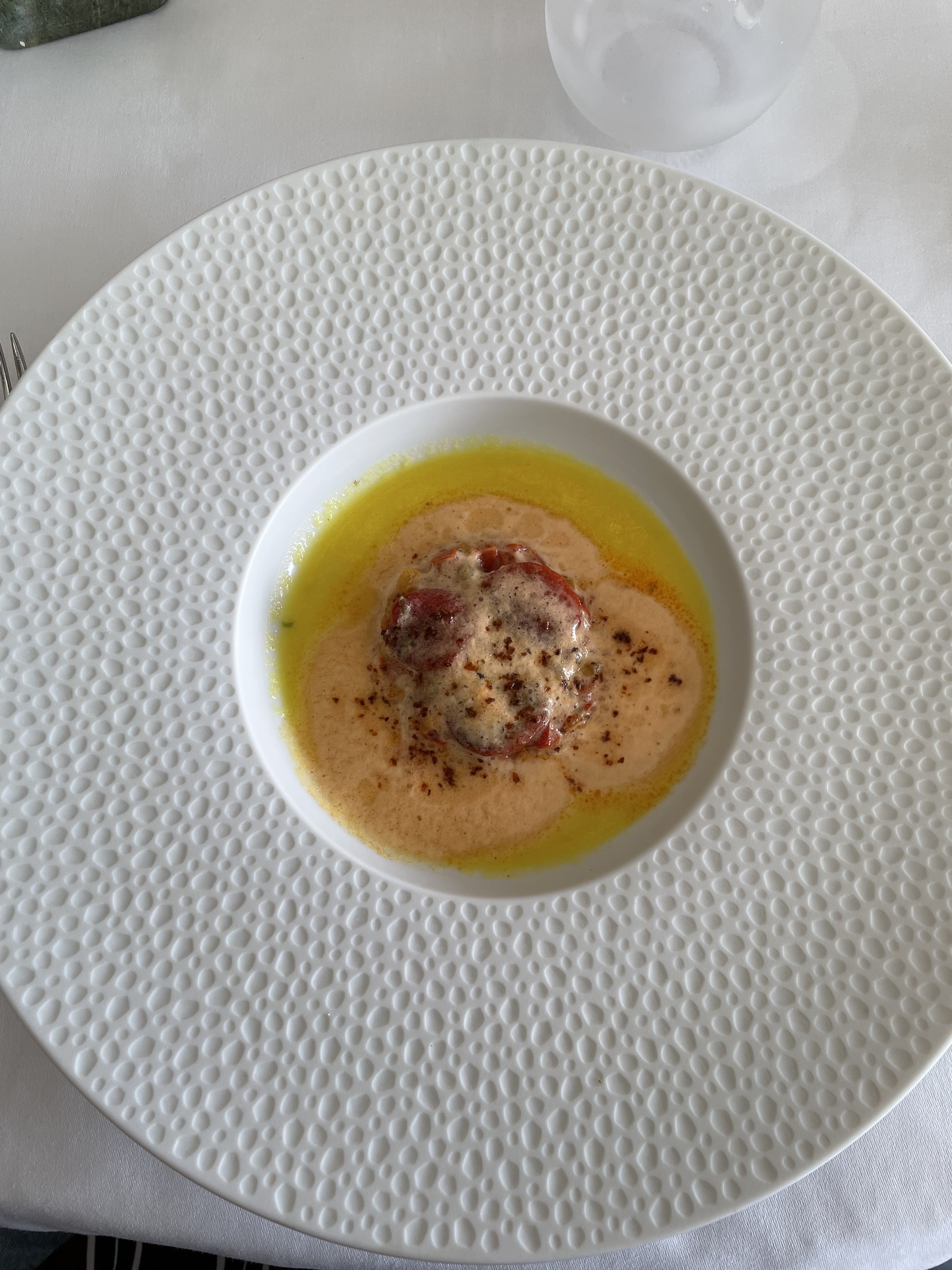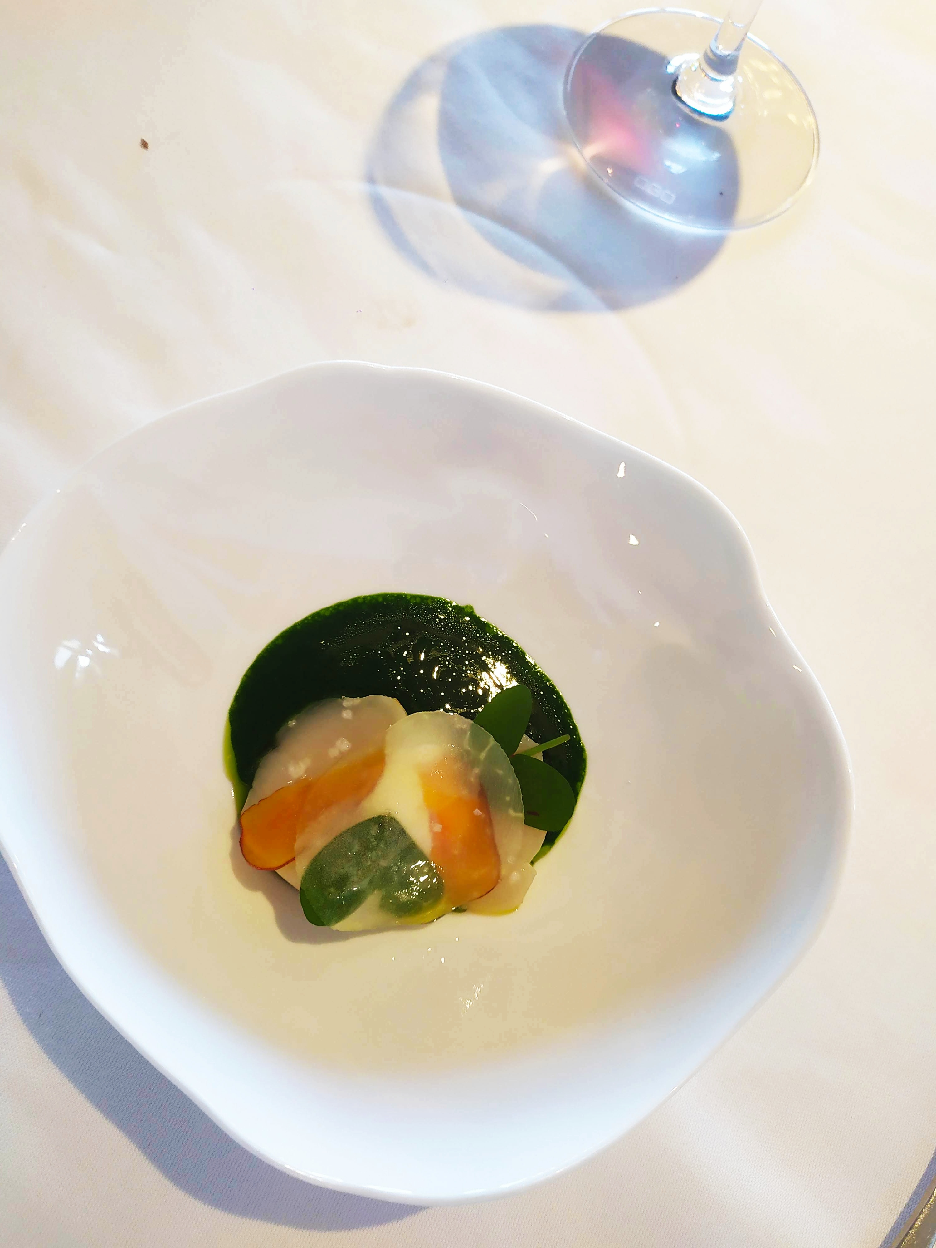 Un voyage entre saveurs et visuel qui met à l’honneur une grande cheffe. Un dîner qui ravira vos papilles dont la finesse du travail de présentation, le mélange des textures et les saveurs vous transcenderont. Pour un Gastronomique Guide Michelin, cela reste abordable. Une dizaine de table, donc si on vous le recommande, vous risqueriez de venir et d’apprécier... et vous auriez raison.