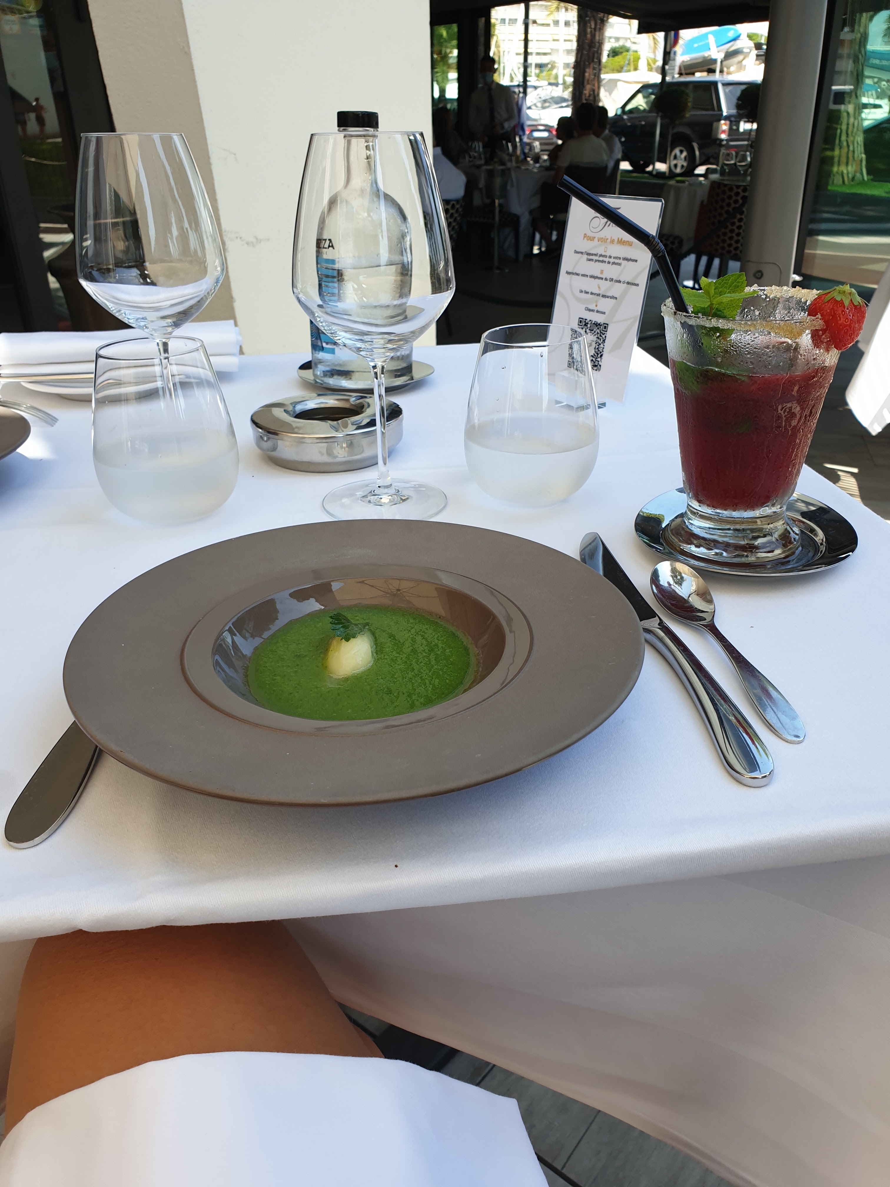 Bel endroit, bel emplacement. Difficile pour se garer, menu imposé avec un ticket d'entrée à 85 euros qui n'était pas très visible à la réservation. Pas de carte