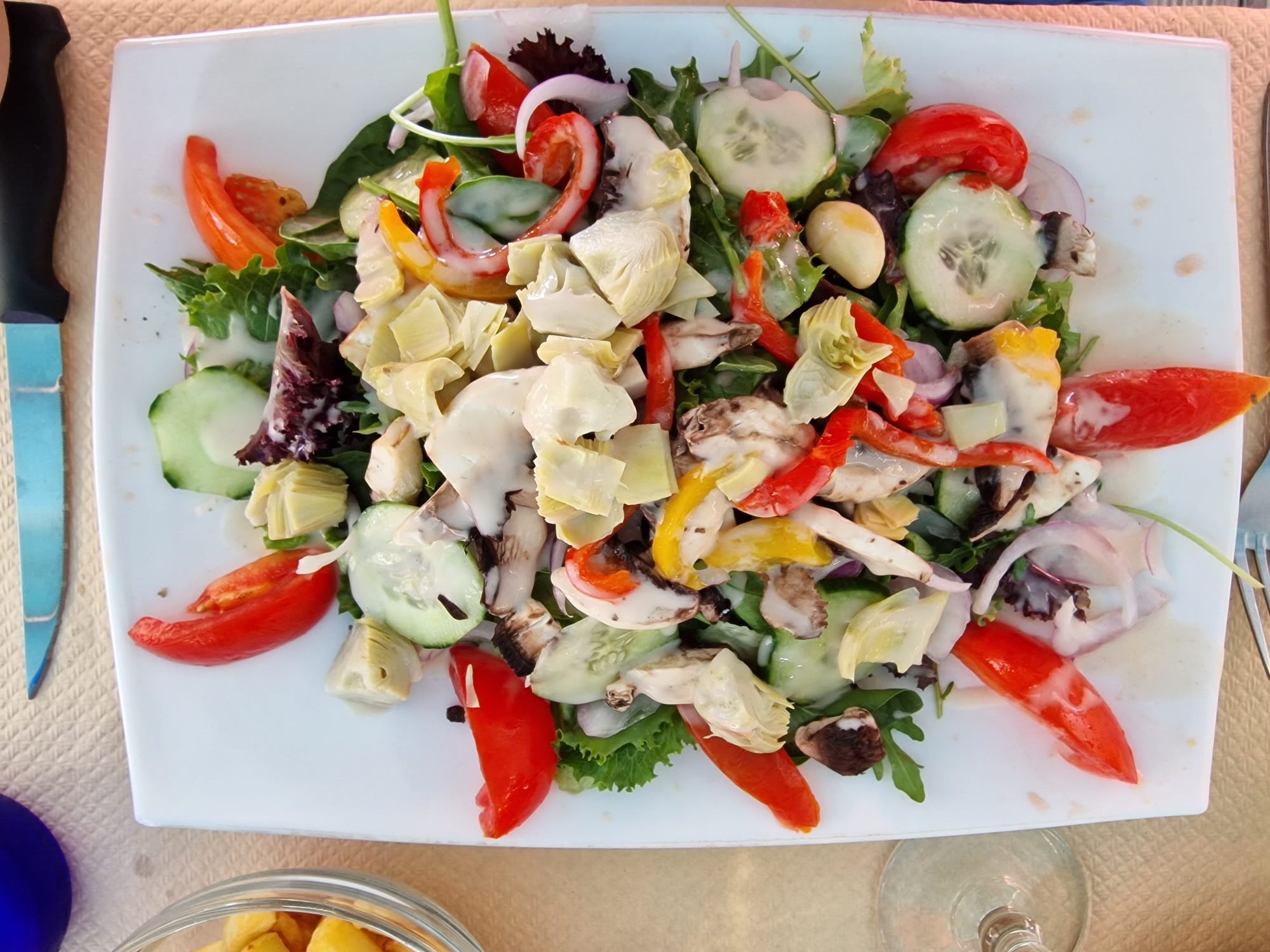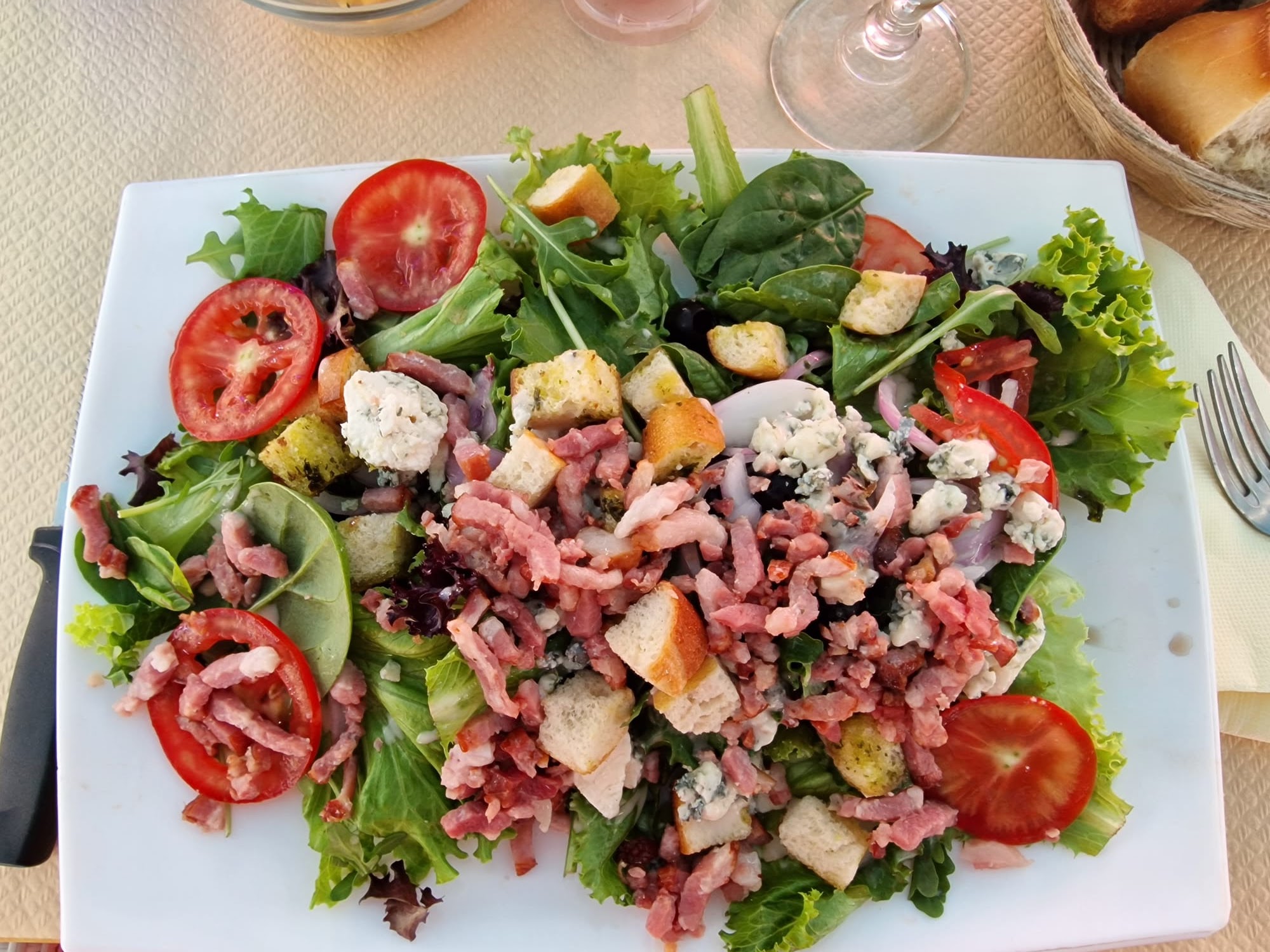 Piège à touristes bien placé avec une vue mer... Salade catalane (feuille de salade pas lavé, j'ai trié les feuilles noir et celles avec de la terre). Quantité d'ingrédient toute relative !!! Que ce soit pour l'entrée, le plat principal ou du dessert, tarte poire chocolat, la poire était timide sur un fond de pâte sablée épais et sec avec 3 pastilles de chocolat dessus . 2 étoiles car on a eu à faire à deux serveuses très agréable.