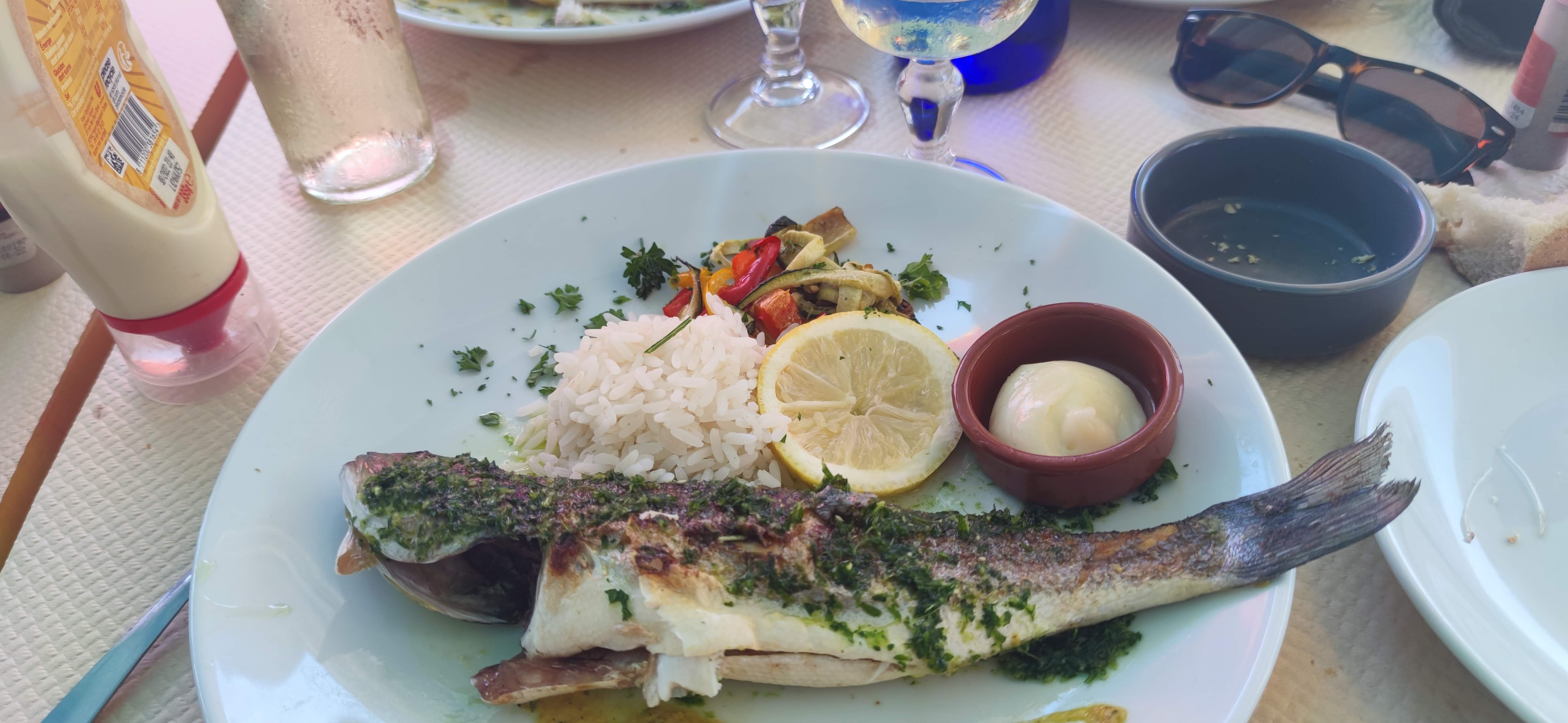A deux pas de la plage, une équipe pro très sympa à l’écoute et dynamique ! Notre choix du jour nous a comblés. Pour 22 euros, bar entier, thon, gambas, moules, coques, couteaux, scupion, accompagnés de riz, légumes et aïoli. Le reste de la carte propose les plats traditionnels d’un petit restaurant de bord de mer où nous retournerons avec plaisir