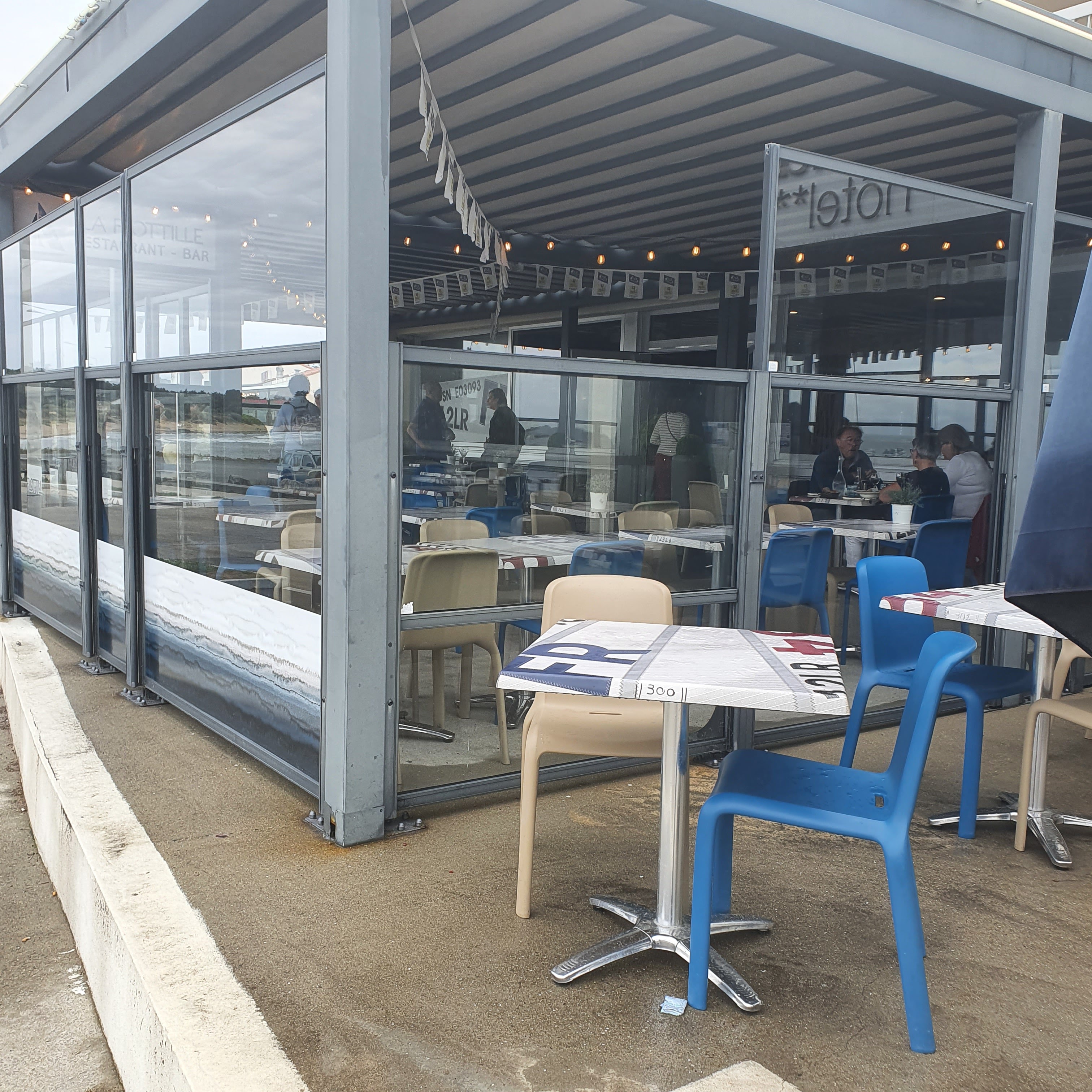 Nous aimons beaucoup les restaurants des Logis de France, en général la cuisine y est savoureuse. La Flotille ne déroge pas, notamment son bar/fenouil/écrasée de pdt à tomber. La salle est classe, confortable, et le personnel attentionné et efficace. Très bonne adresse. Vue sur l océan.